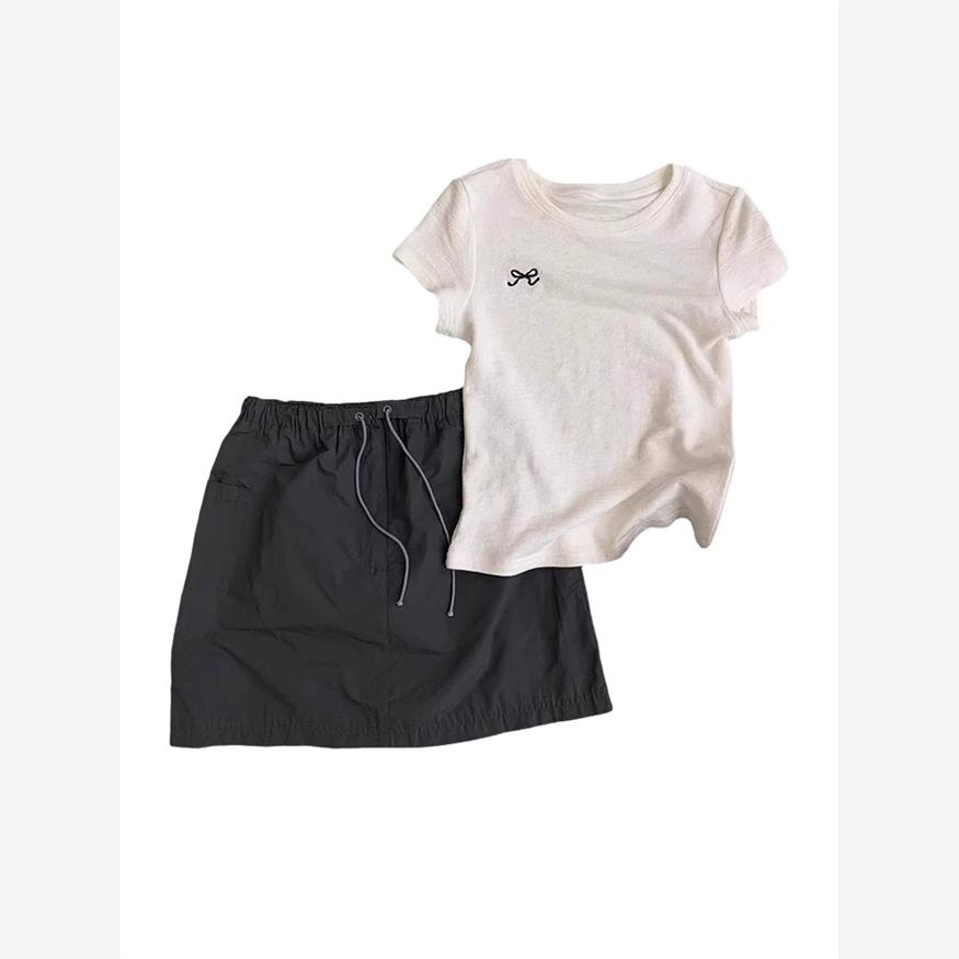 夏装搭配全套韩式休闲热辣上衣、灰色工装短裙、女性减龄时尚套装