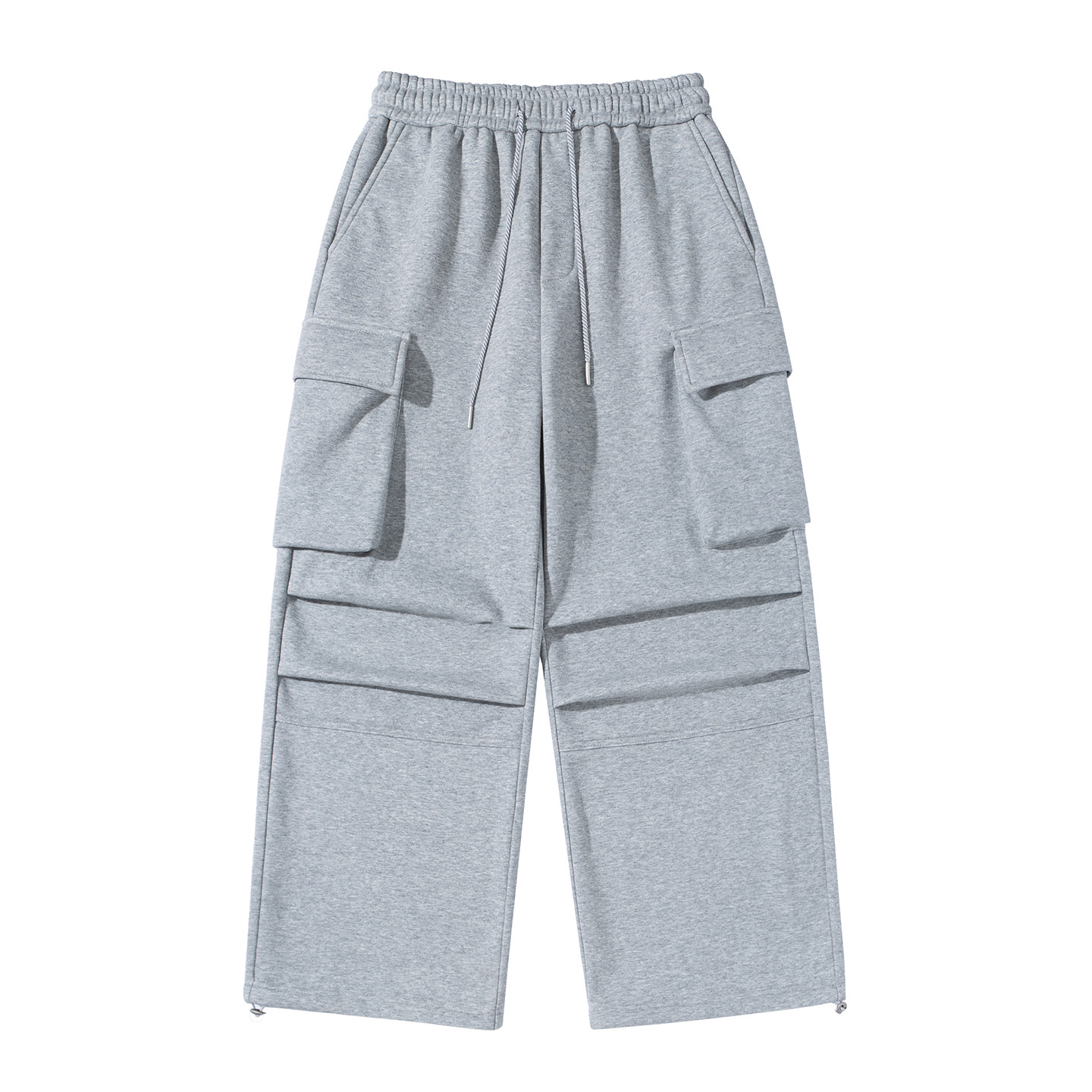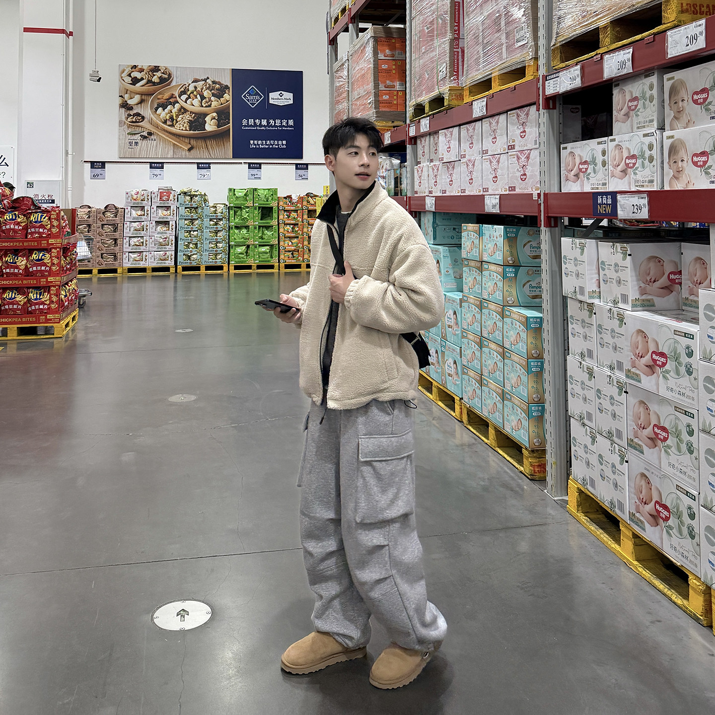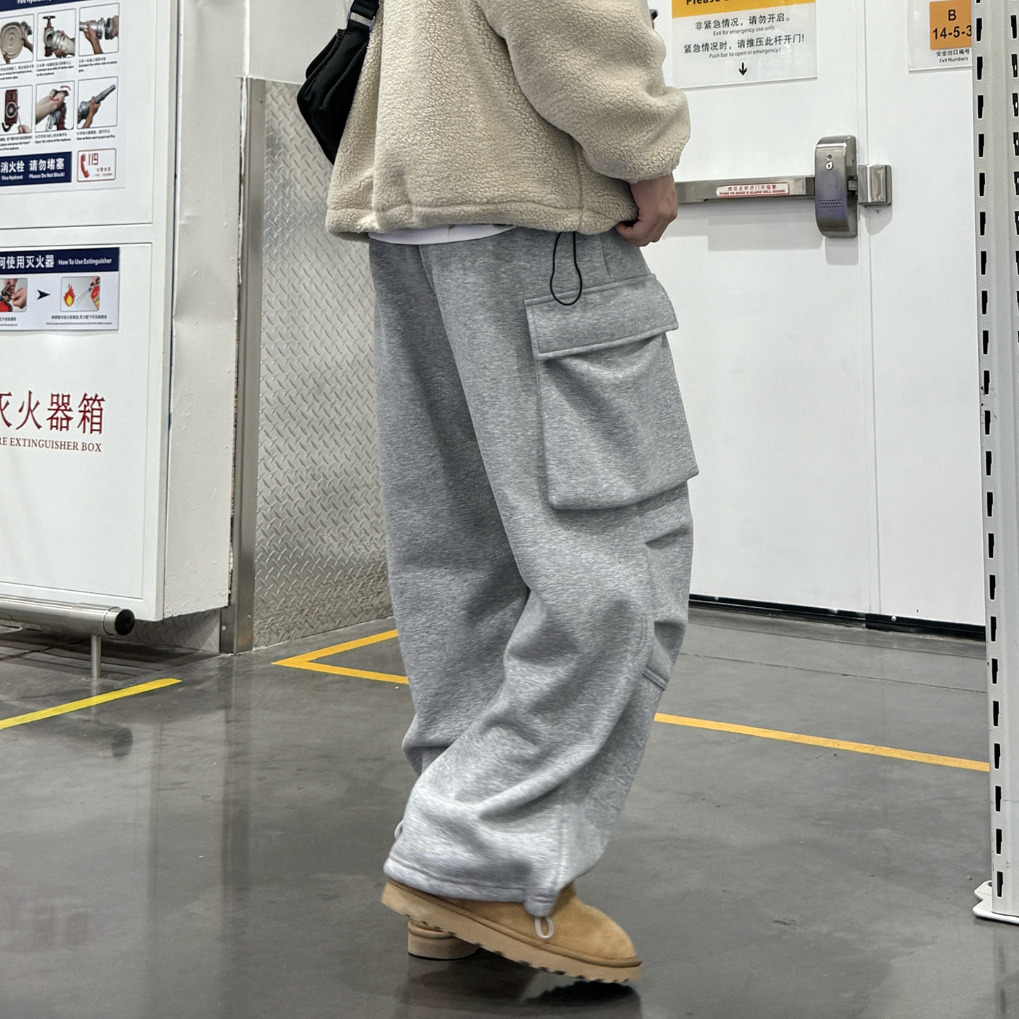 灰色加绒加厚卫裤直筒男生冬季2026新款宽松保暖工装束脚运动长裤