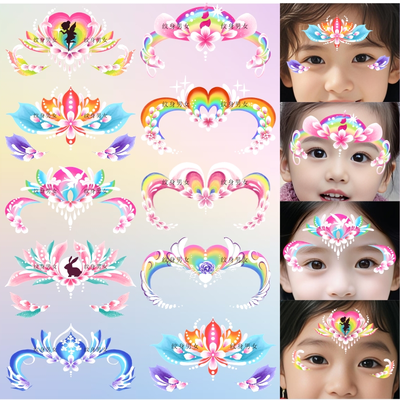 纹身儿童额头彩绘 cos额头可爱动漫蓝色爱莎公主 哪吒眉心贴