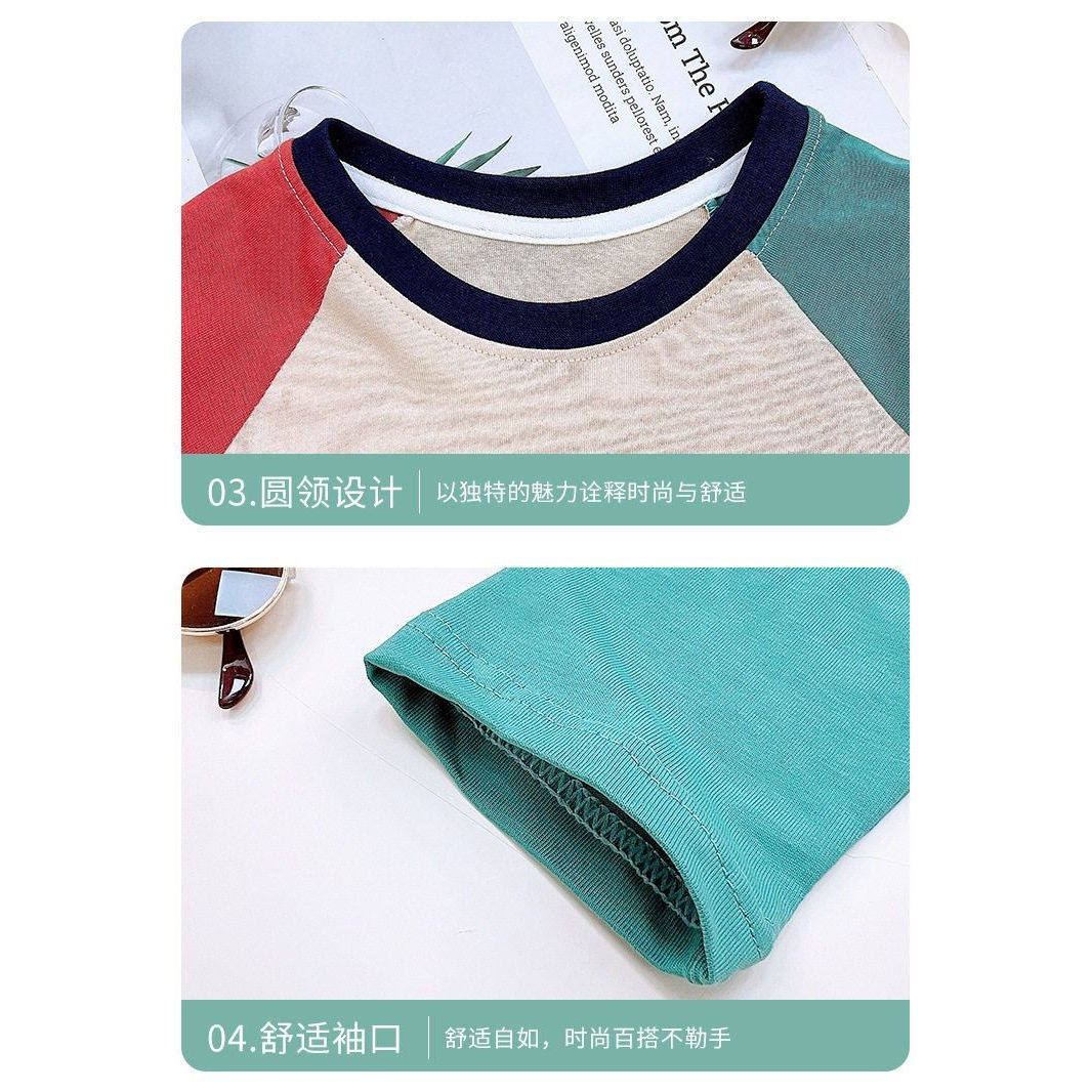 儿童纯棉T恤春秋季男童插肩长袖休闲中大童卫衣上衣100%棉