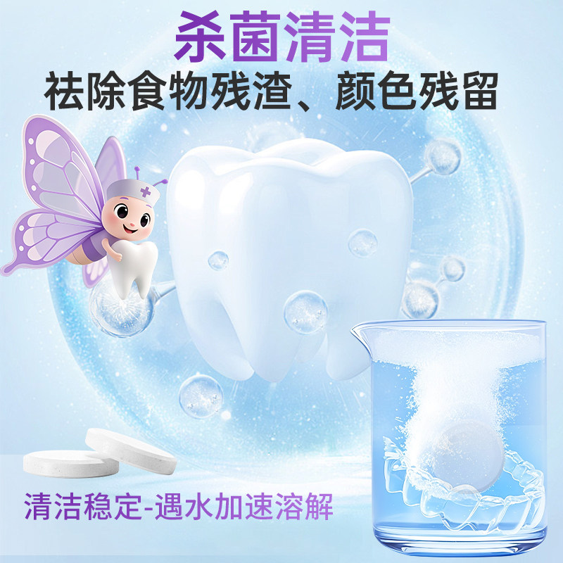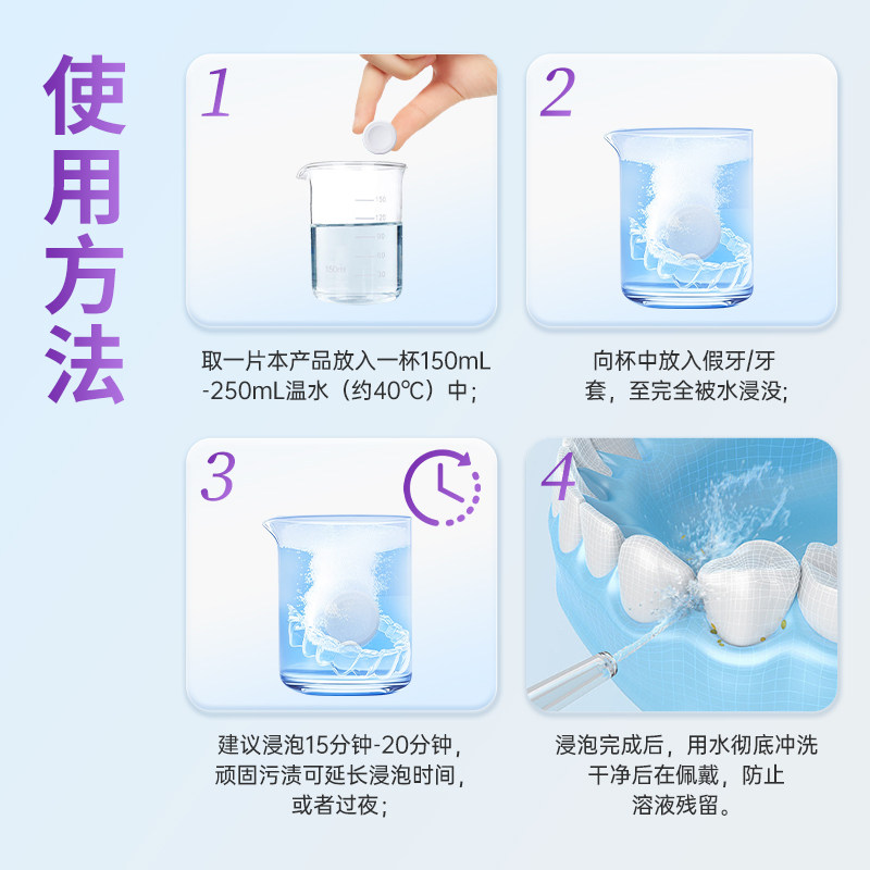 阅紫假牙清洁片全半口泡腾清洗正畸保持矫正器隐形牙套清洁剂