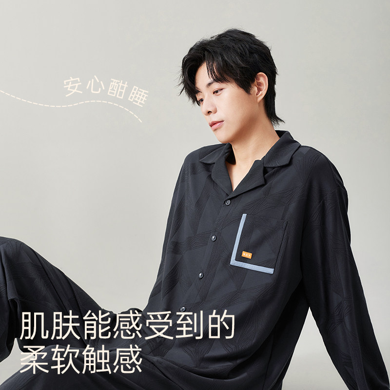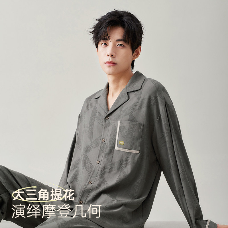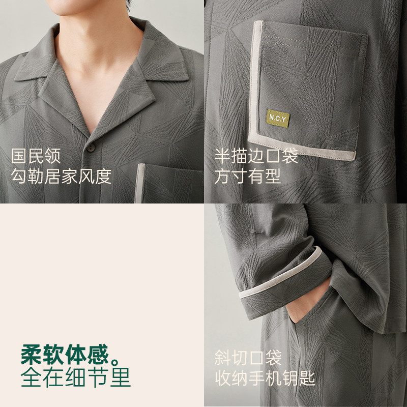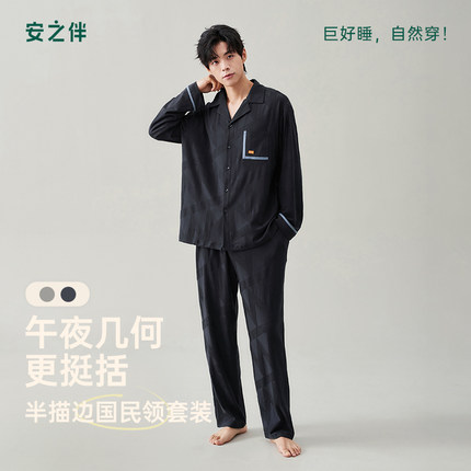 安之伴【巨柔软】男士睡衣春秋季纯棉长袖衬衫春款休闲翻领家居服