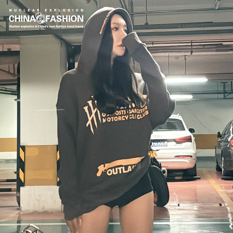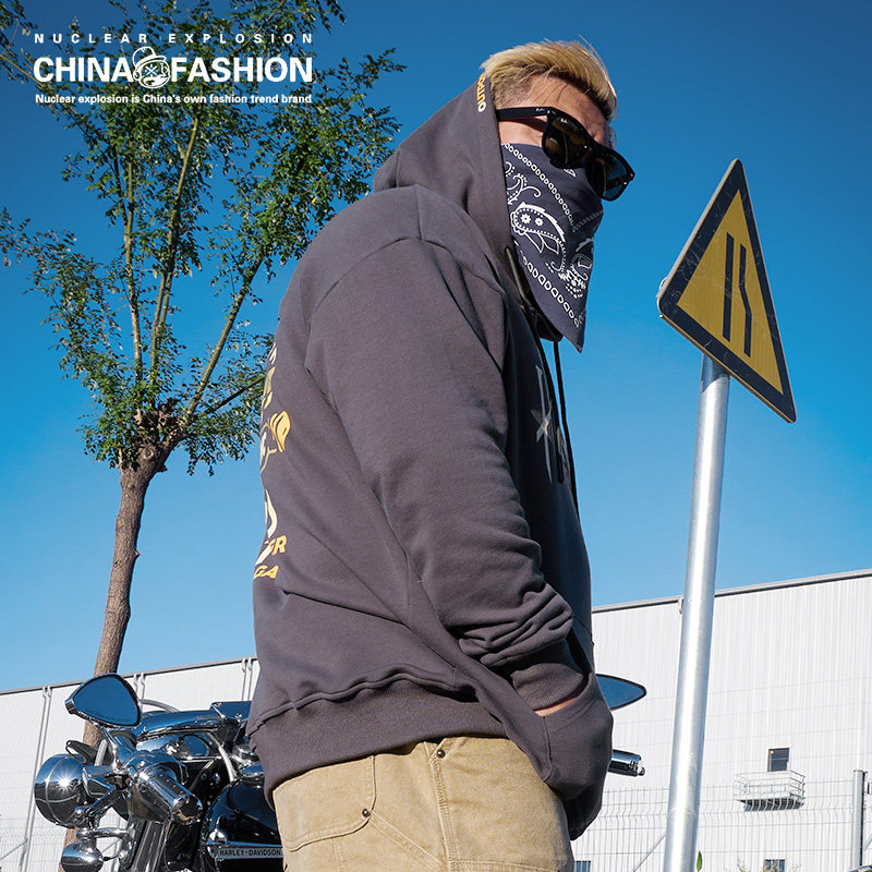 核爆炸大野狼机车风格蝙蝠袖卫衣