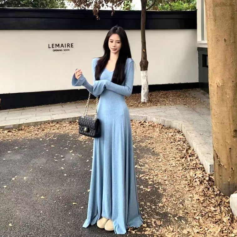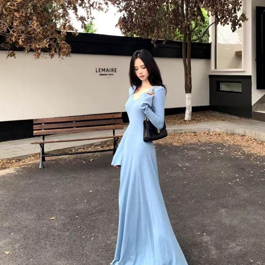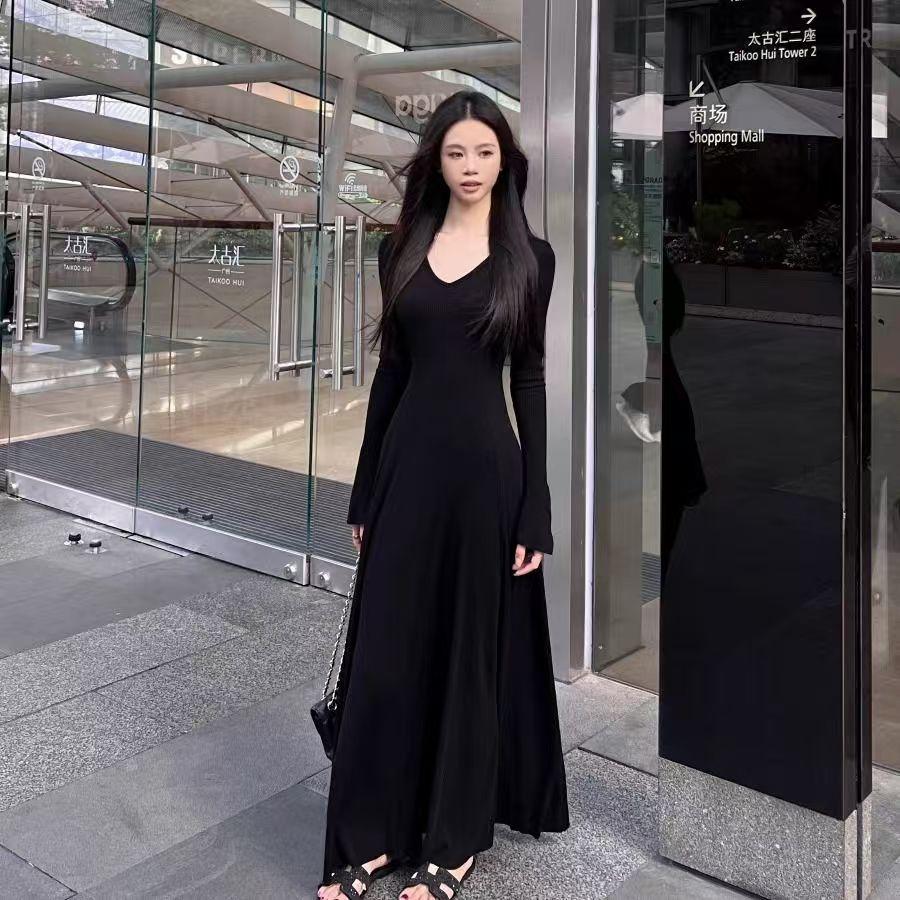 温柔法式德绒磨毛长袖连衣裙女秋冬收腰显瘦内搭打底包臀长裙ins