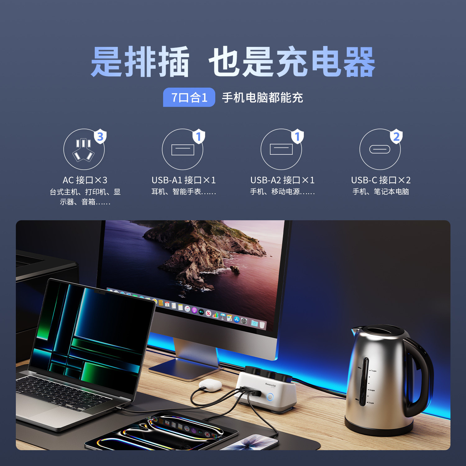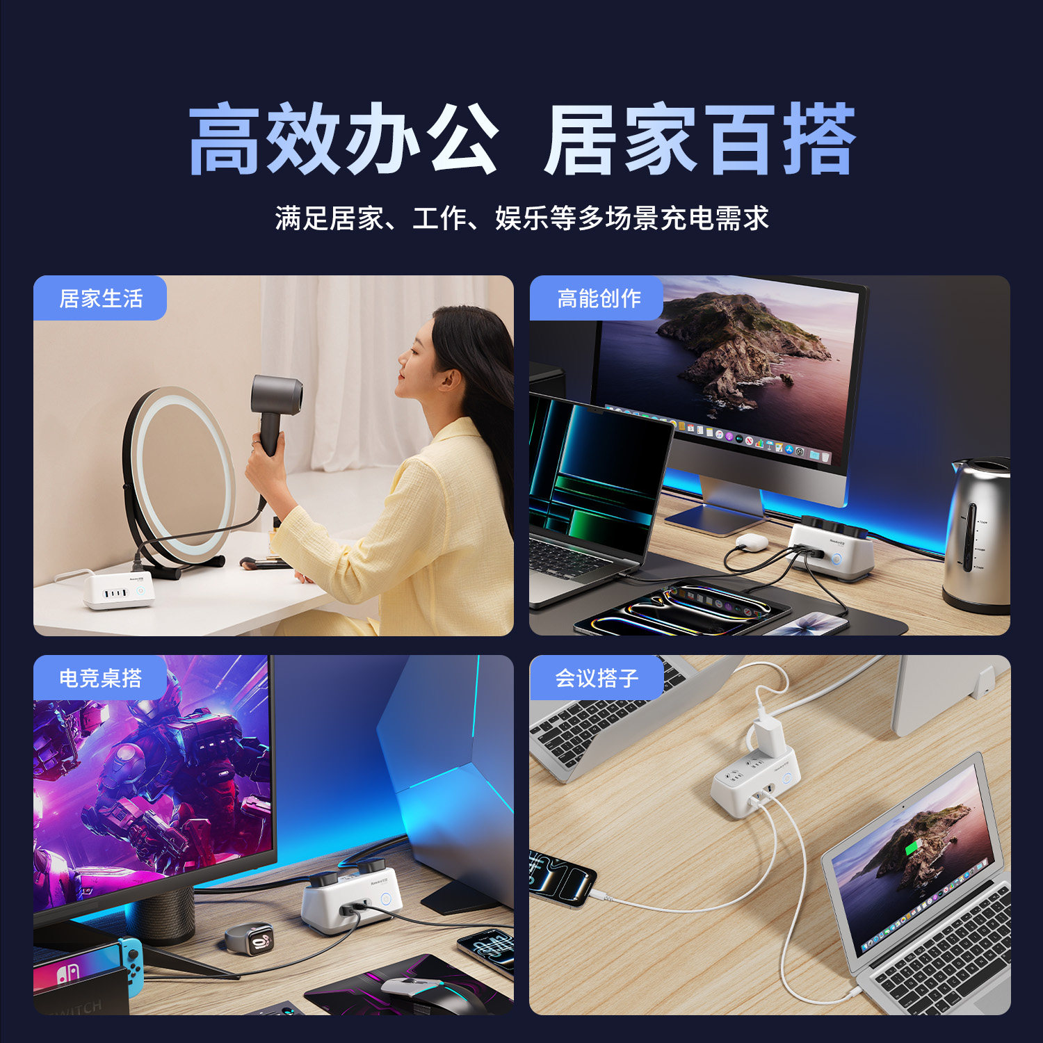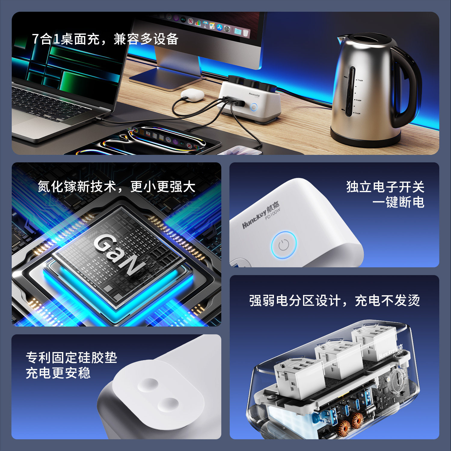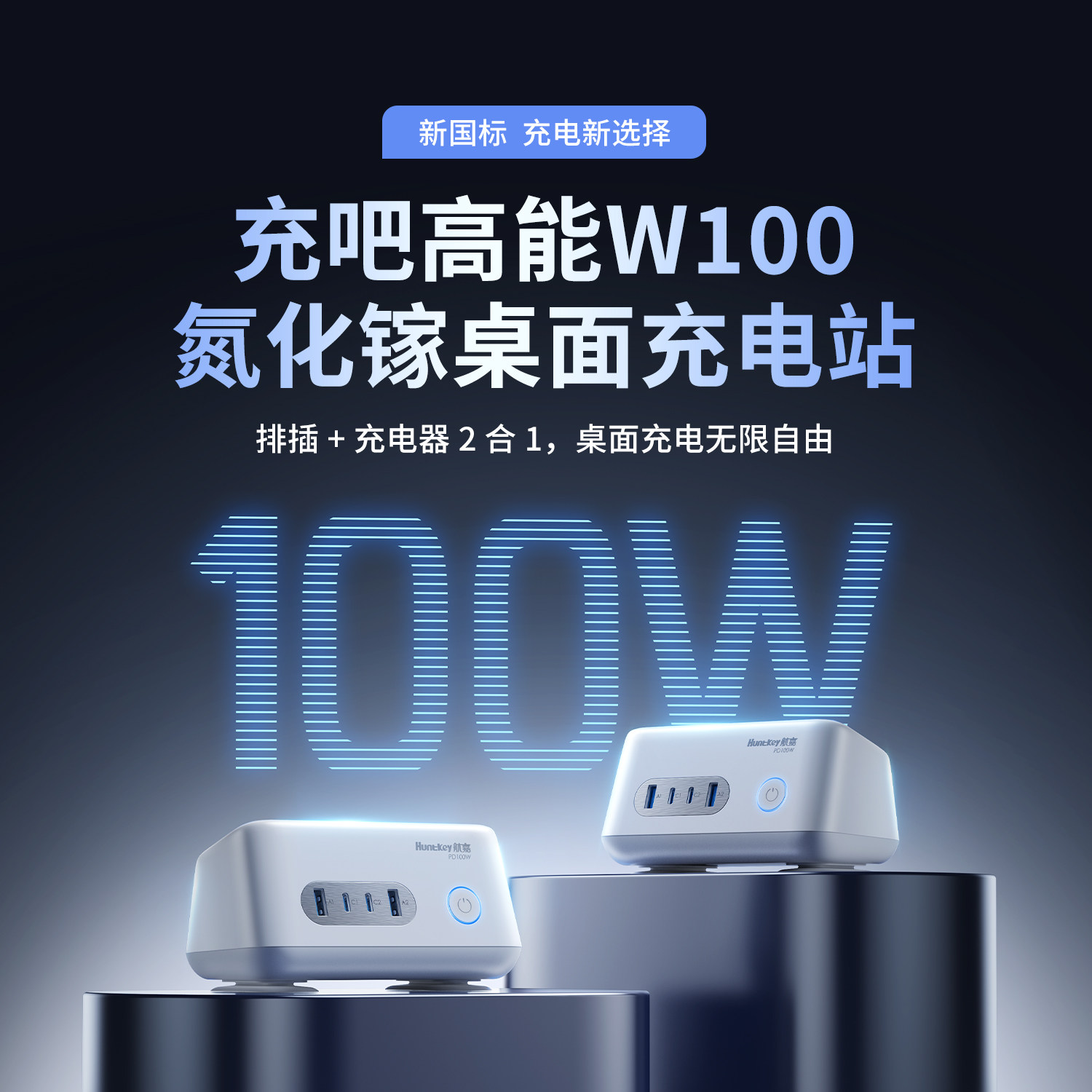 航嘉充吧高能W100快充插座100W多功能插排68W插座USB桌面创意typec氮化镓插线板手机充电器适用于摩托罗拉
