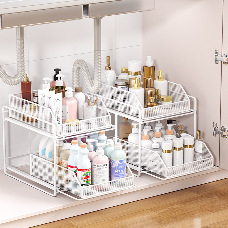 浴室柜下水槽置物架抽拉式双层柜内专用拉篮卫生间收纳柜分层架子