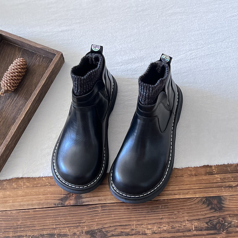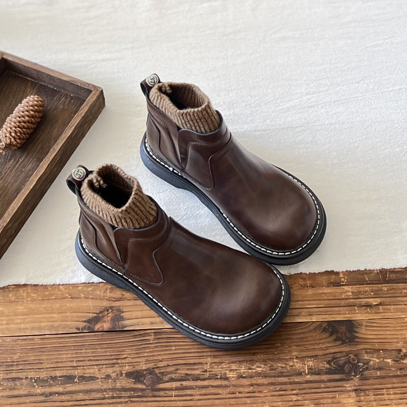 复古风高帮大头娃娃鞋女靴子短靴