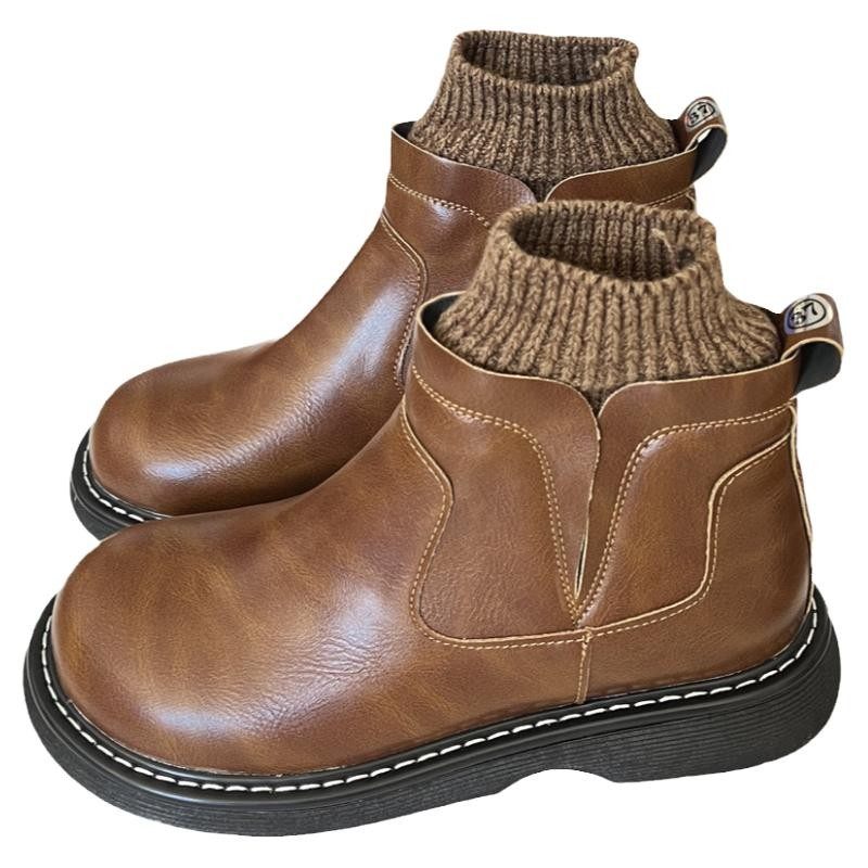 复古森系马丁靴女2025春季新款厚底短靴平底高帮大头娃娃鞋女靴子