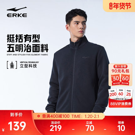鸿星尔克外套男2025冬季新款男士立领针织卫衣夹克运动服爸爸男装