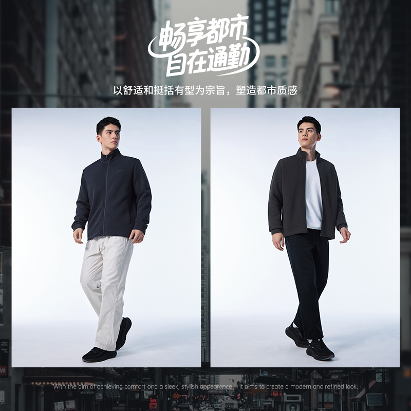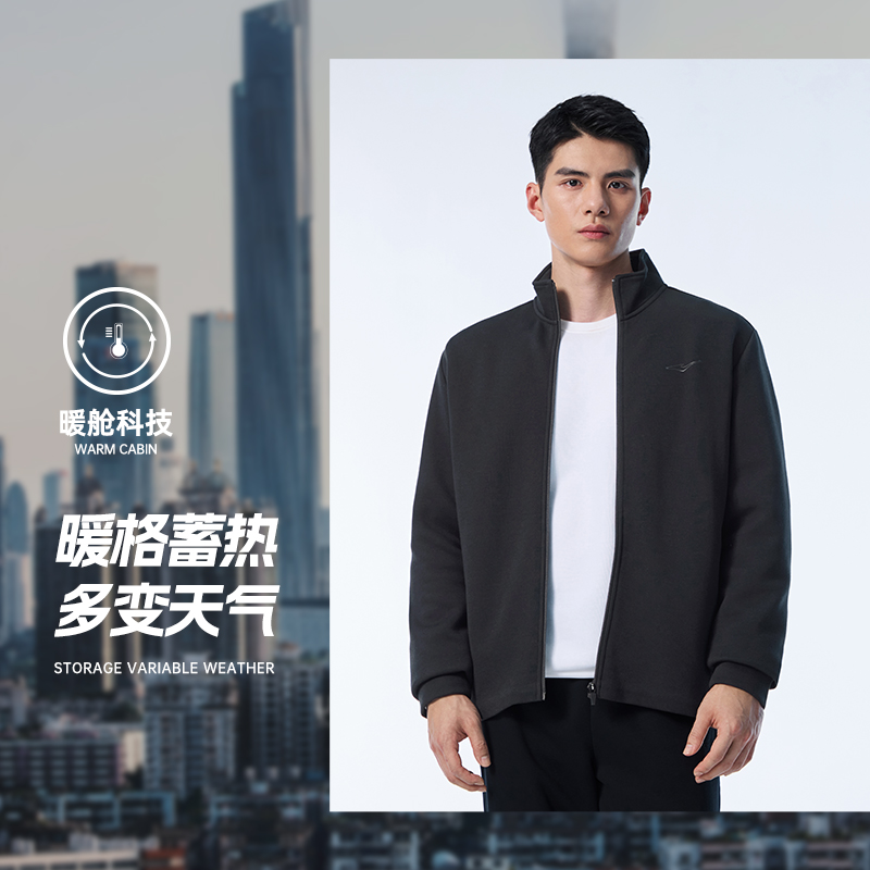 鸿星尔克外套男2025秋冬新款男士立领针织卫衣夹克运动服爸爸男装