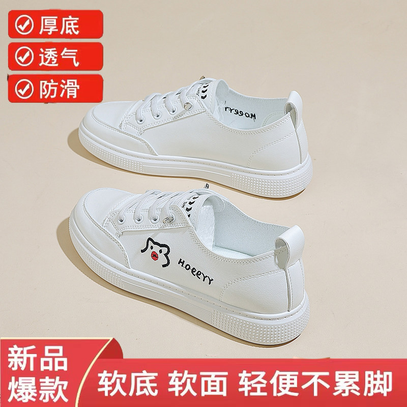 真皮浅口透气小白鞋女2026春季新款百搭平底时尚耐磨防滑旅游单鞋