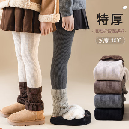 女童深冬加绒打底裤学生外穿贴身堆堆裤裤儿童加厚保暖裤打底袜