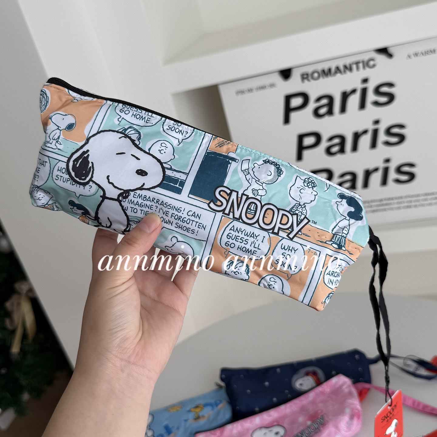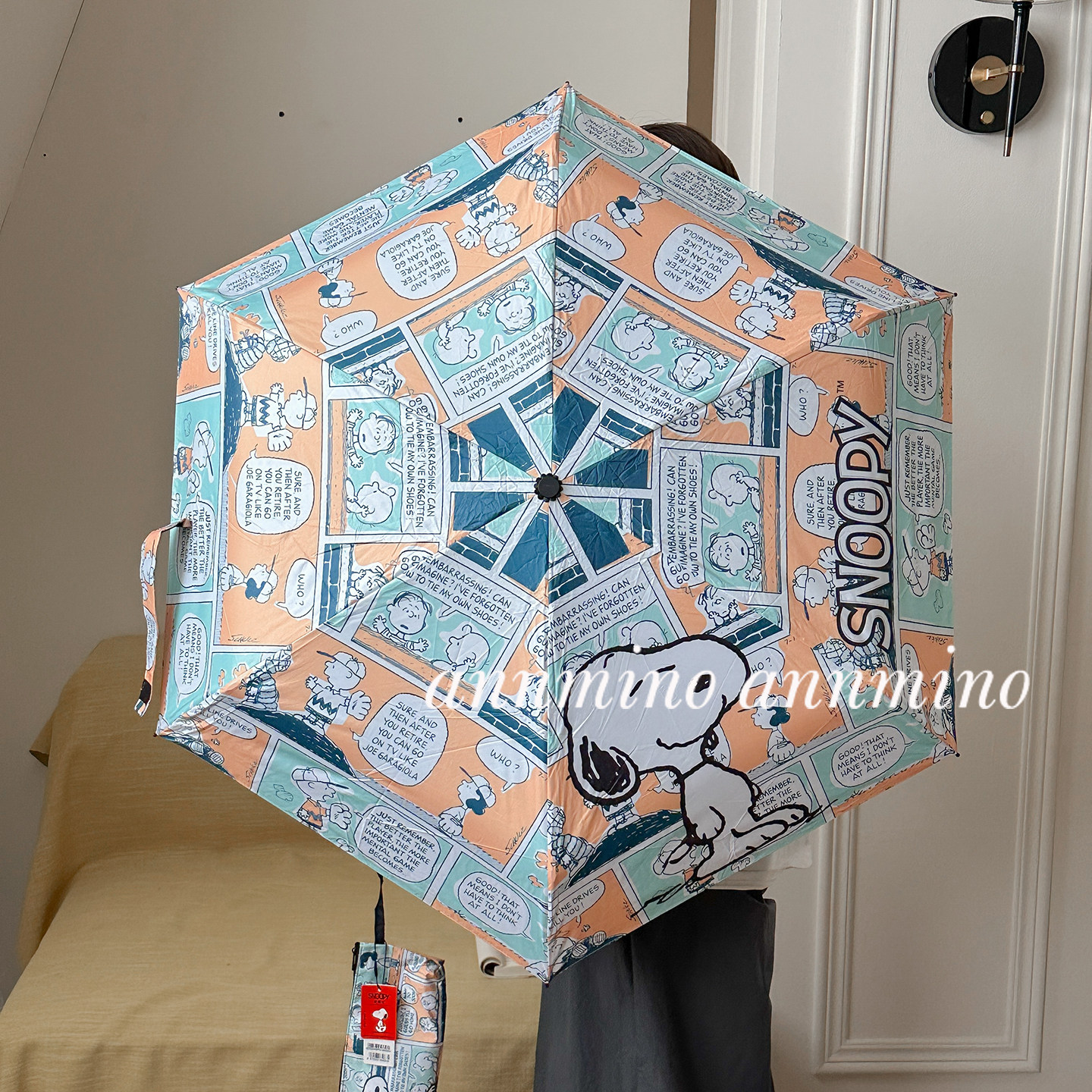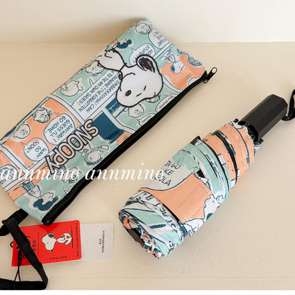 annmino/正版史努比雨伞可爱卡通轻巧五折晴雨两用黑胶防晒太阳伞