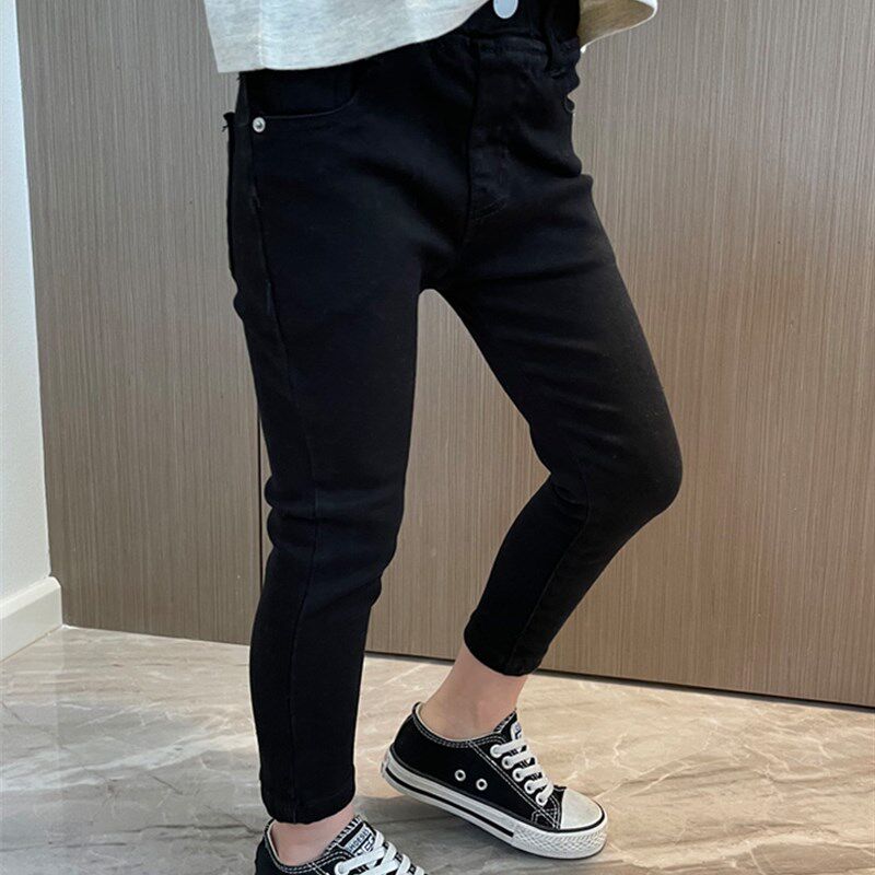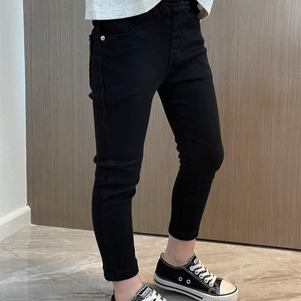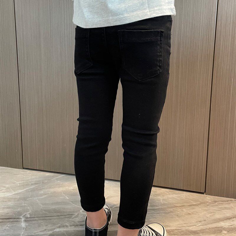 女童牛仔裤子黑色小脚修身紧身铅笔裤2024春季女孩简约宝宝长裤潮