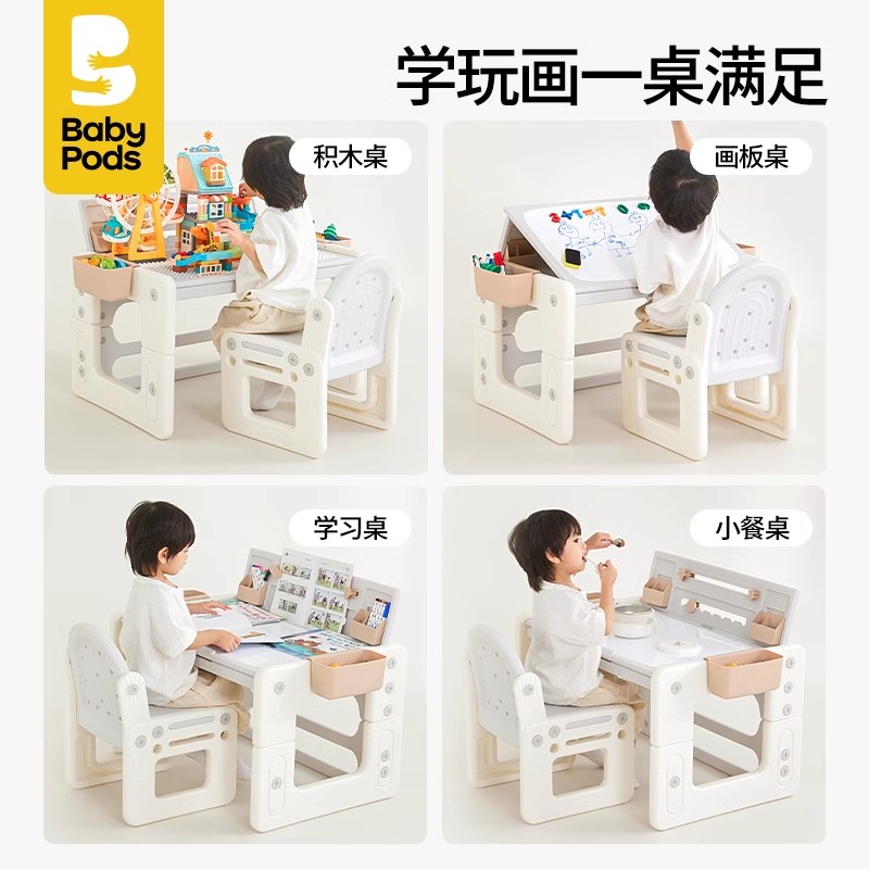 babypods儿童桌椅学习桌小学生书桌可升降写字桌积木桌家用课桌椅