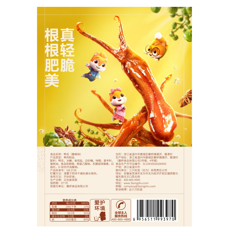 三只松鼠甜辣味独立包装鸭舌
