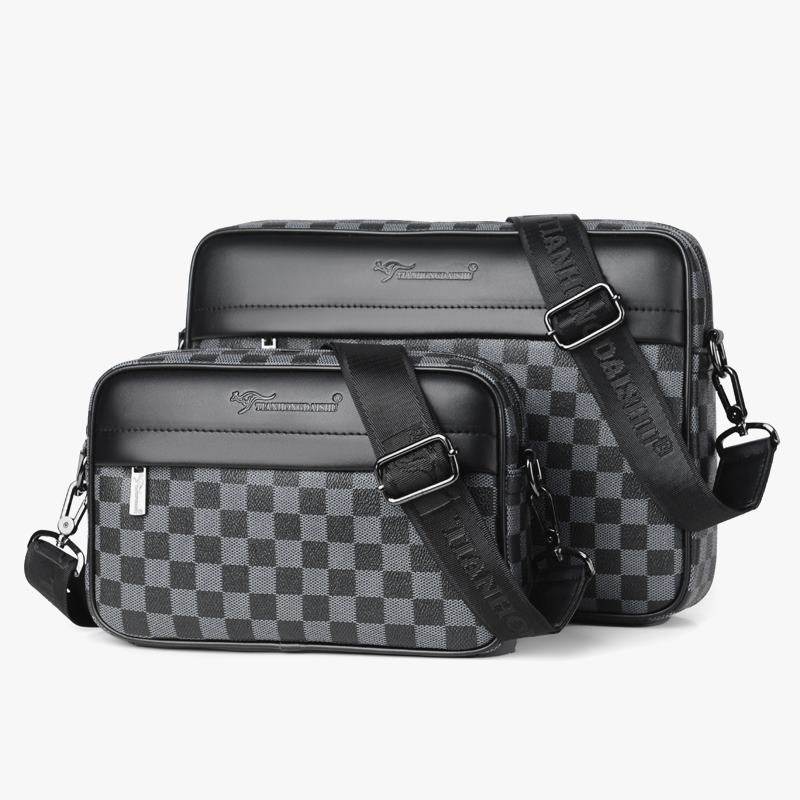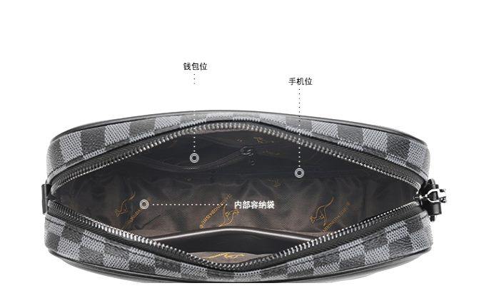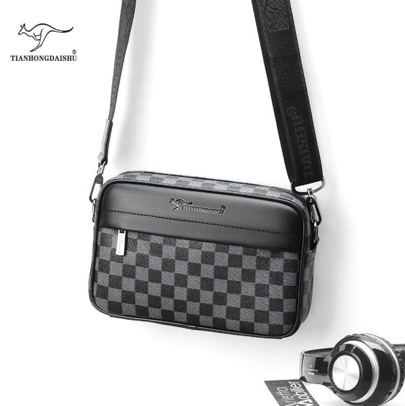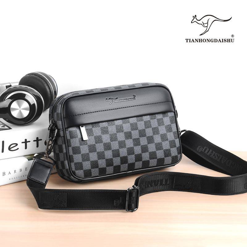 天弘袋鼠新款2025男包单肩斜挎包横款男士皮包男款格子小背包