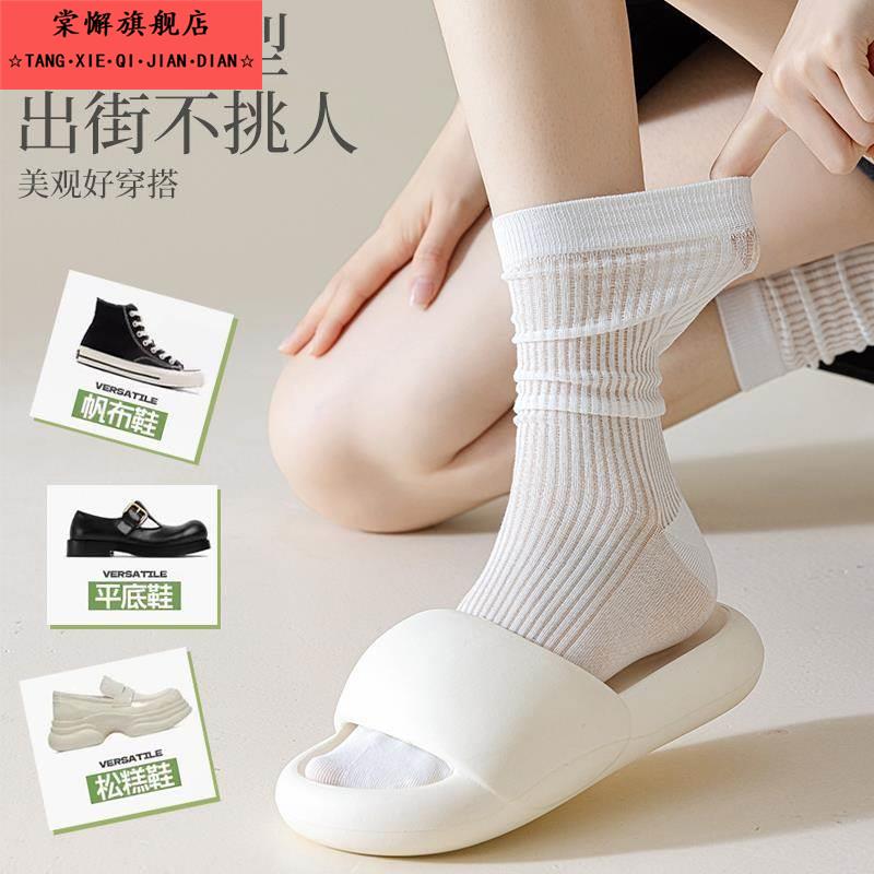 无骨月子袜子女秋加厚透气防臭小腿堆堆袜秋天白色中筒袜2025新款