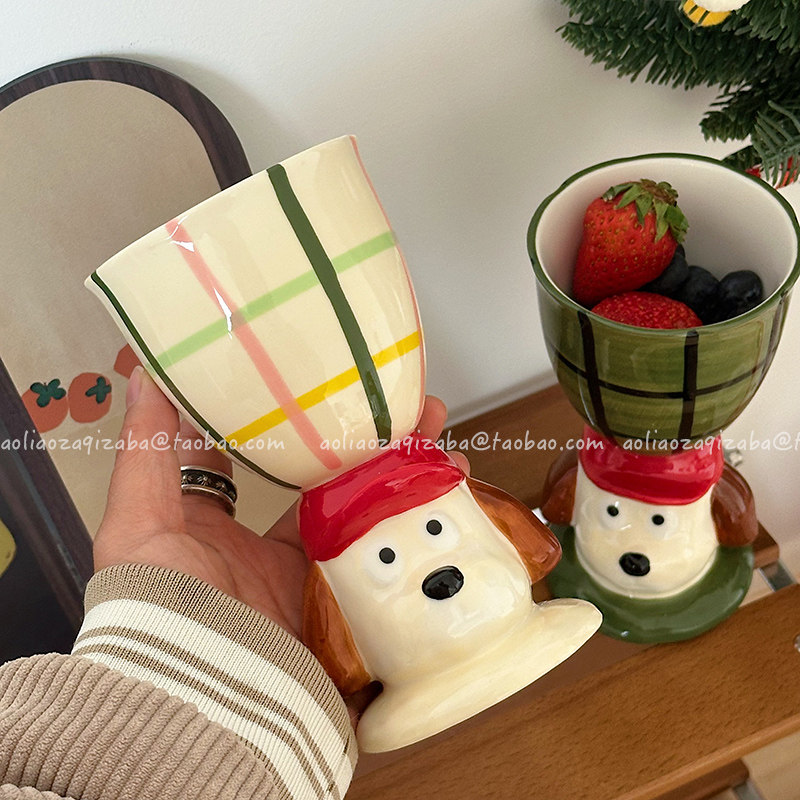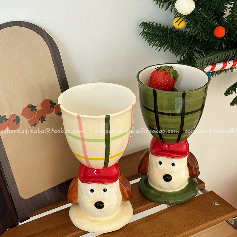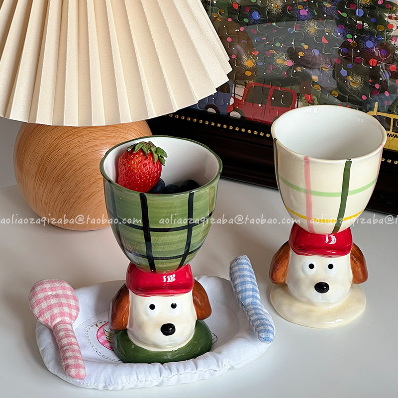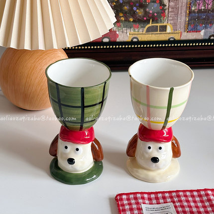 可爱掌门小狗高脚杯陶瓷马克杯喝水杯情侣杯冰淇淋甜品杯生日礼物