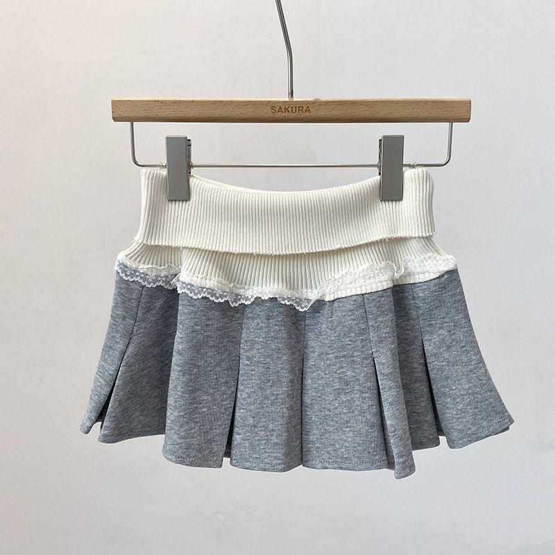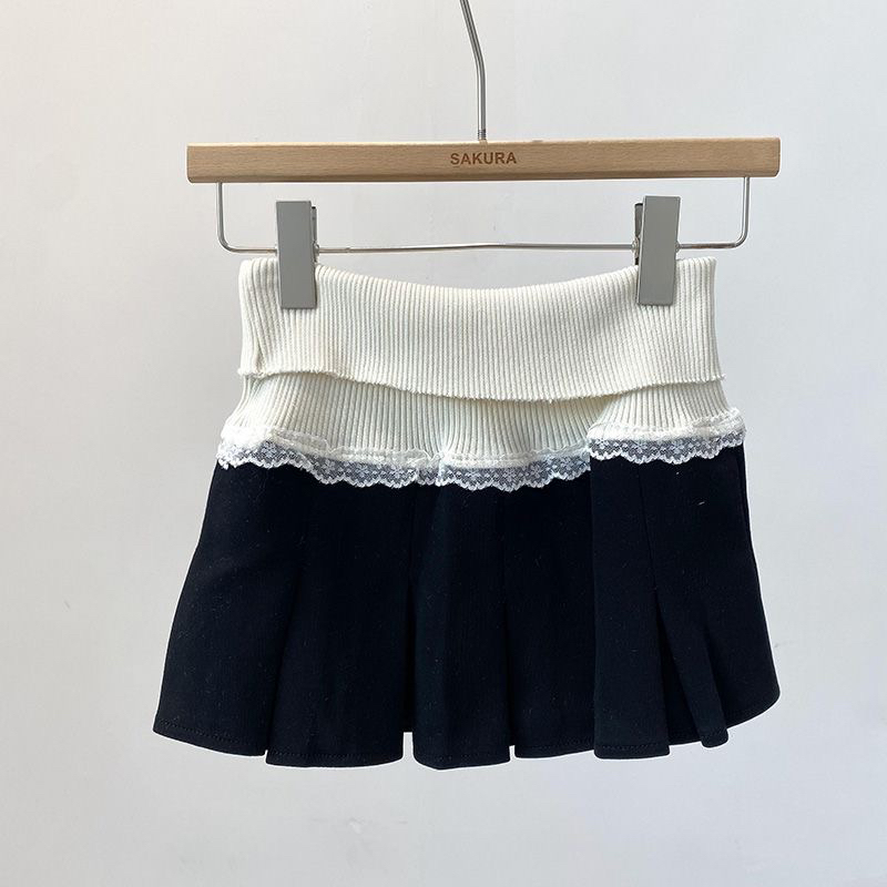 针织拼接百褶裙百褶蕾丝秋冬2025新款高腰辣妹半身裙短裙裙子