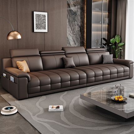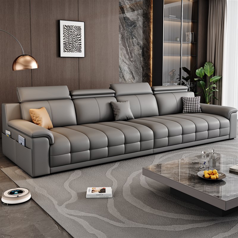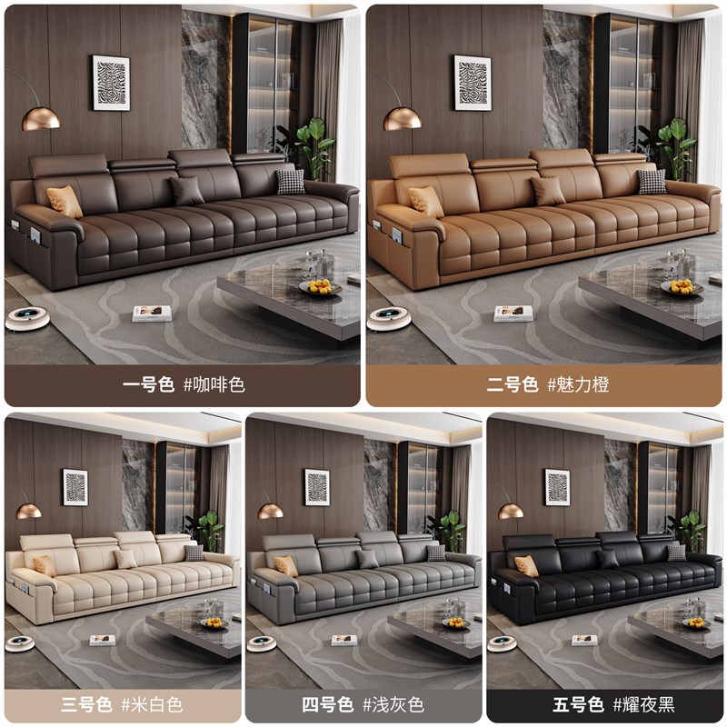 劳伦斯真皮沙发直排三人位小户型意式极简一字型客厅乳胶沙发组合