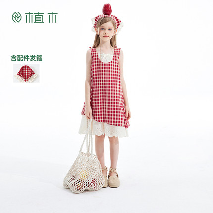 植木女童连衣裙2026夏季新款中大童森系格纹背心裙儿童裙子童装