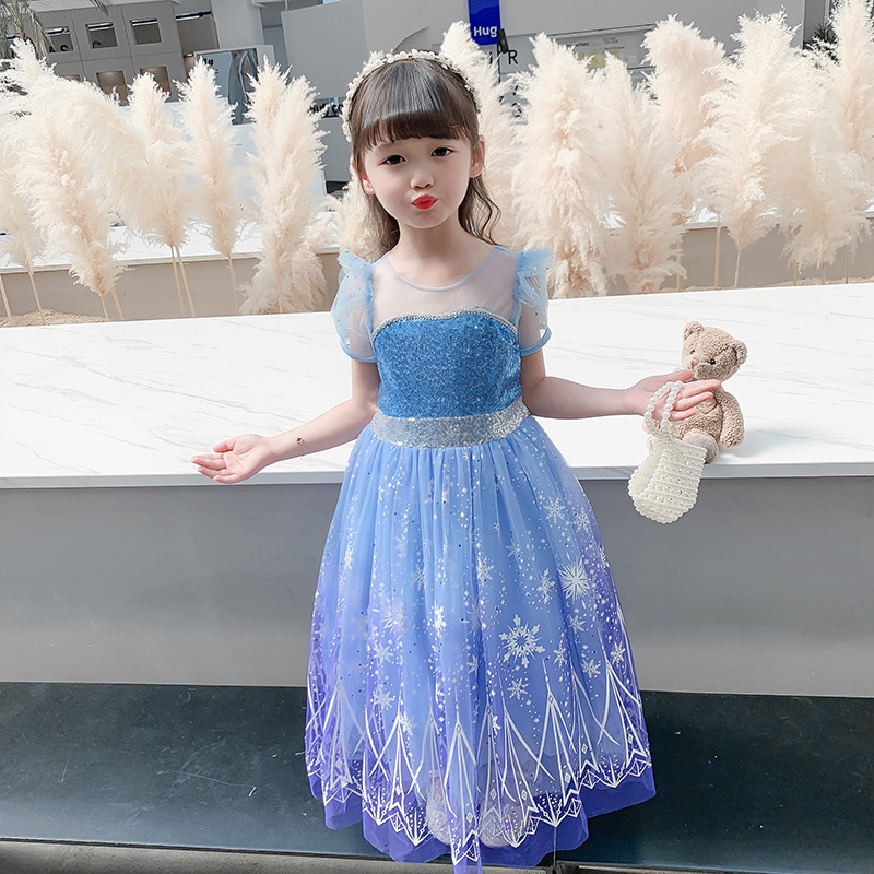 女童冰雪奇缘爱莎连衣裙小女孩会发光艾莎长裙子儿童生日礼服夏季