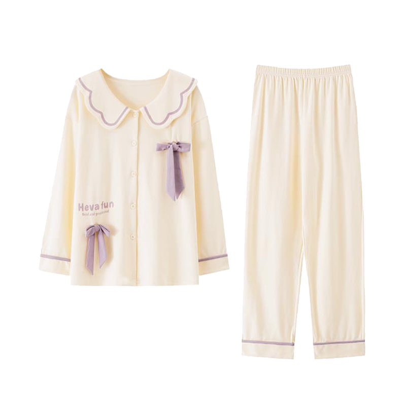 猫人纯棉睡衣女春夏季长袖长裤开衫套装新款宽松休闲外穿家居服