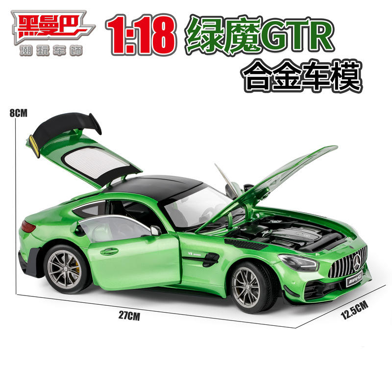 新款 1:18绿魔GTR开门避震联动转向合金声光仿真汽车模型
