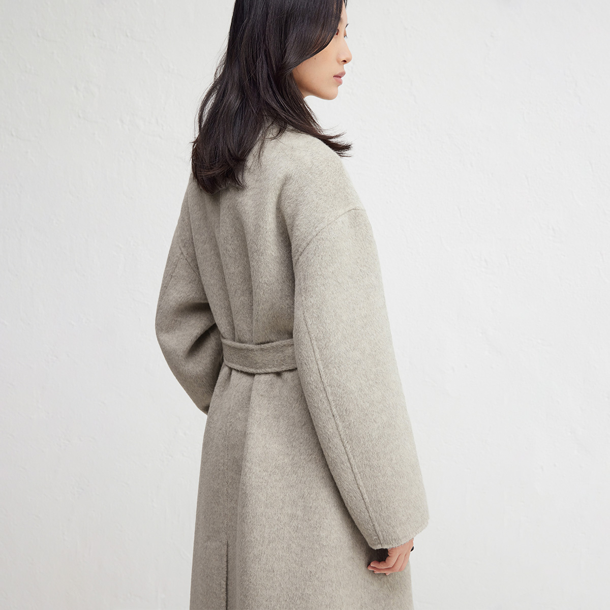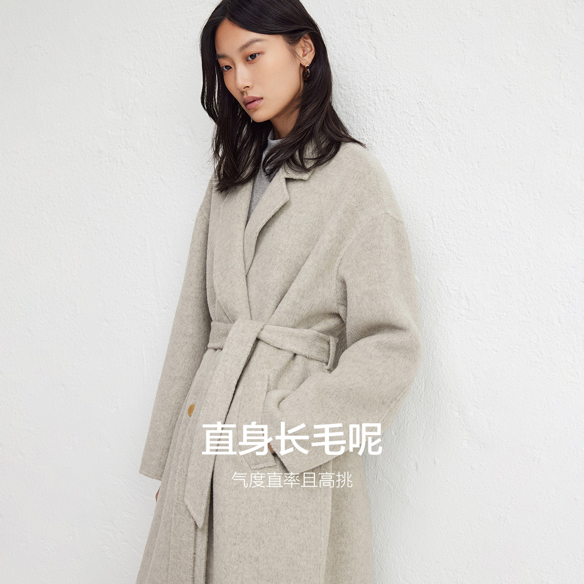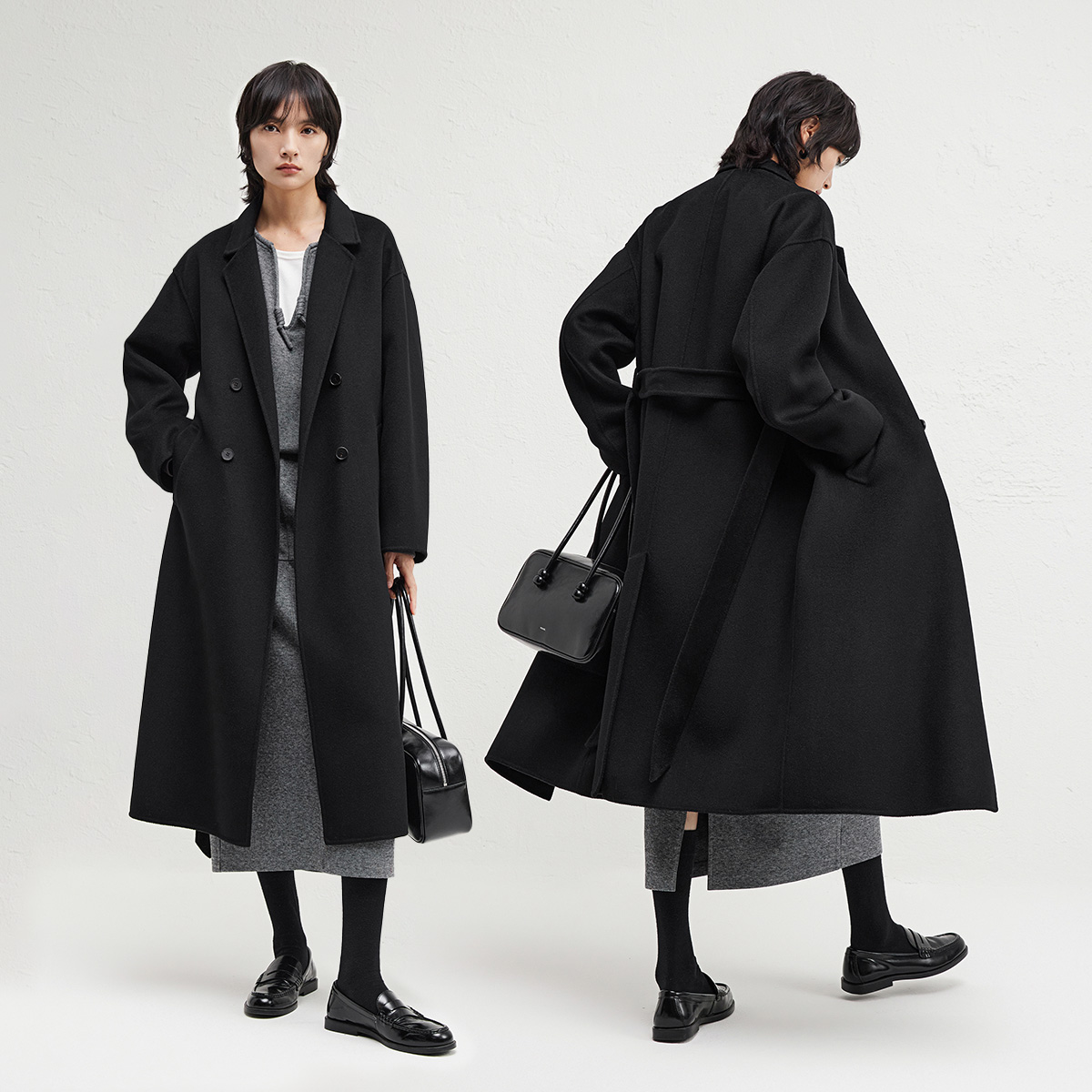 播西装领双排扣系带羊毛呢外套女24冬新长款呢子大衣DDR4AD5196