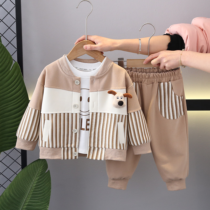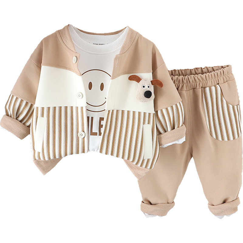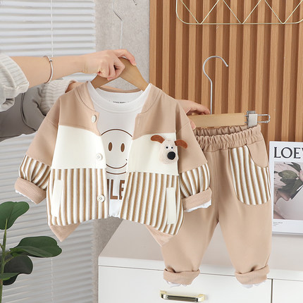 男童帅气潮童装套装2春秋季1一岁3宝宝春装三件套婴儿童小孩衣服4
