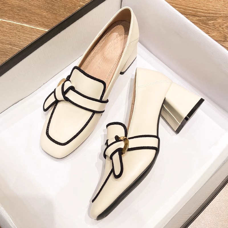 乐福鞋女粗跟2025春夏新款复古百搭英伦小皮鞋高跟单鞋软皮豆豆鞋