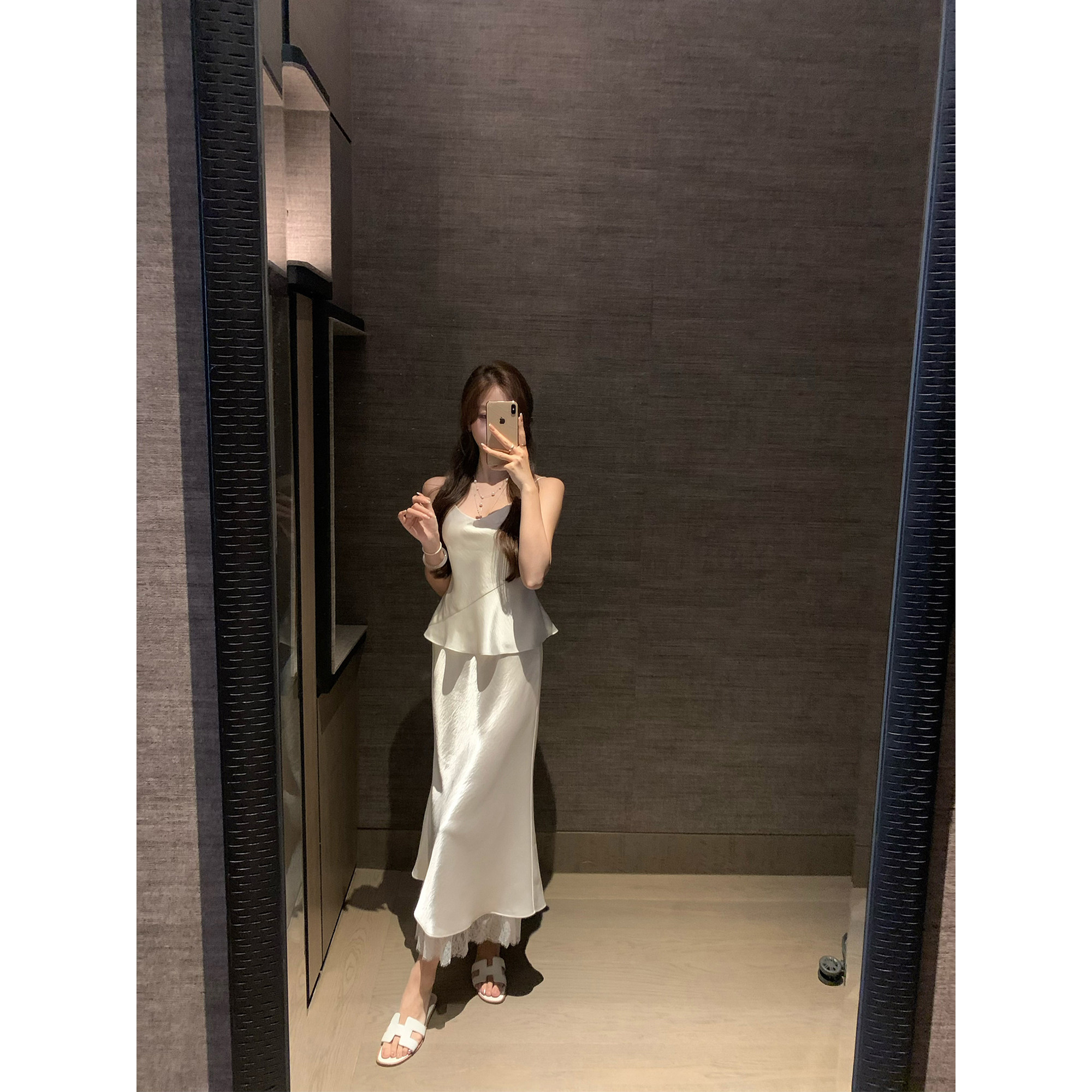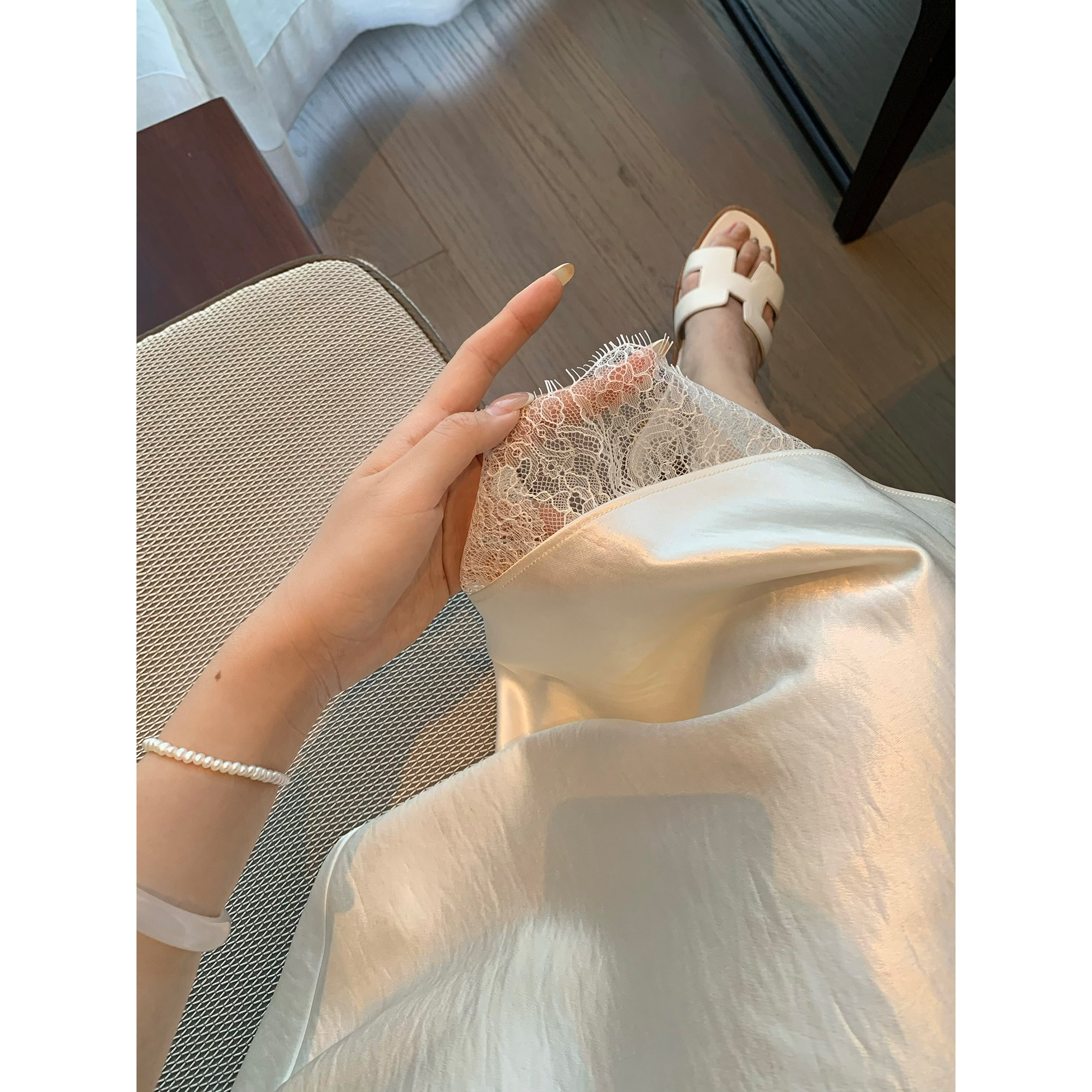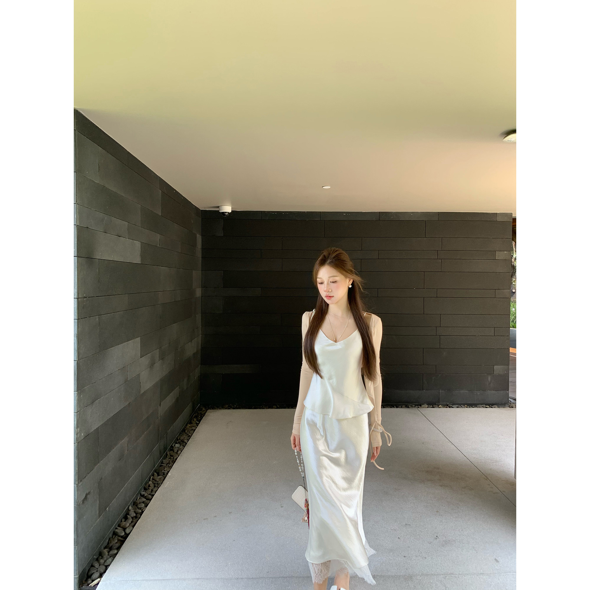 许许然Madeleine【娇贵姐姐】春季仿醋酸蕾丝拼接白色鱼尾半身裙