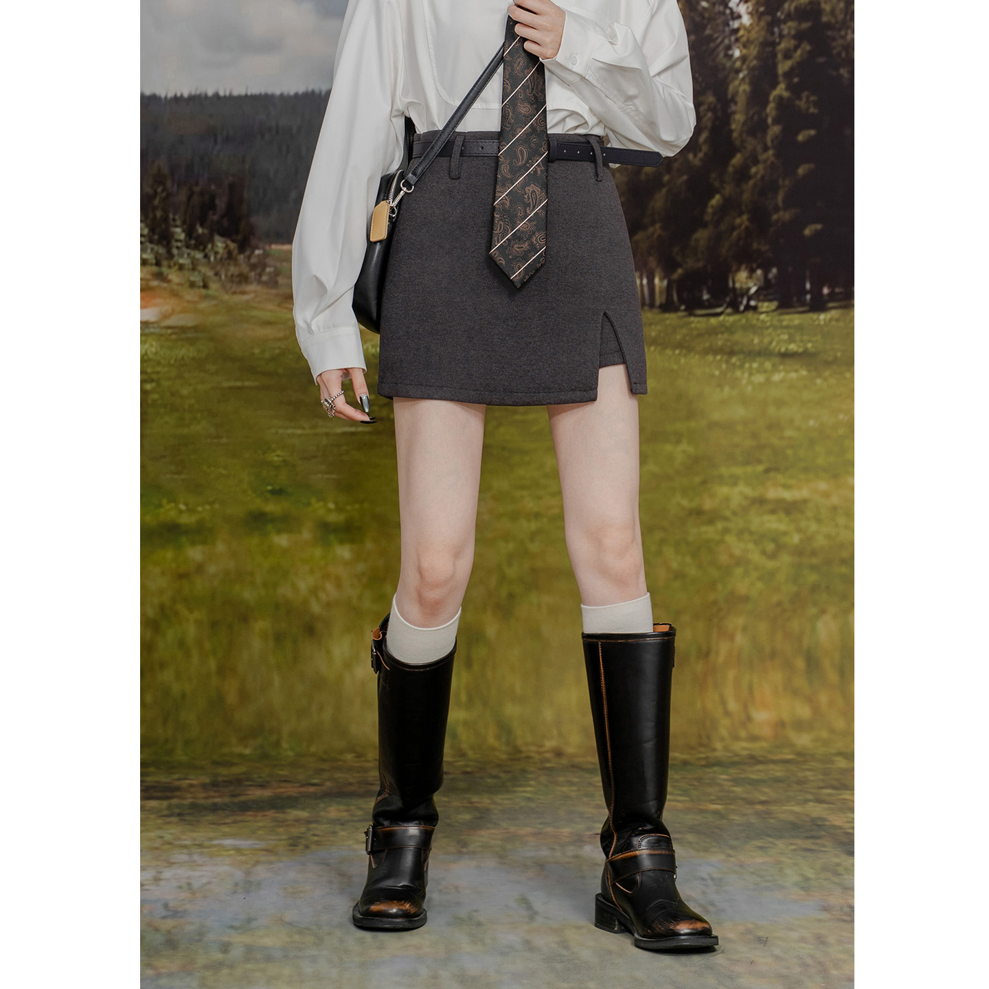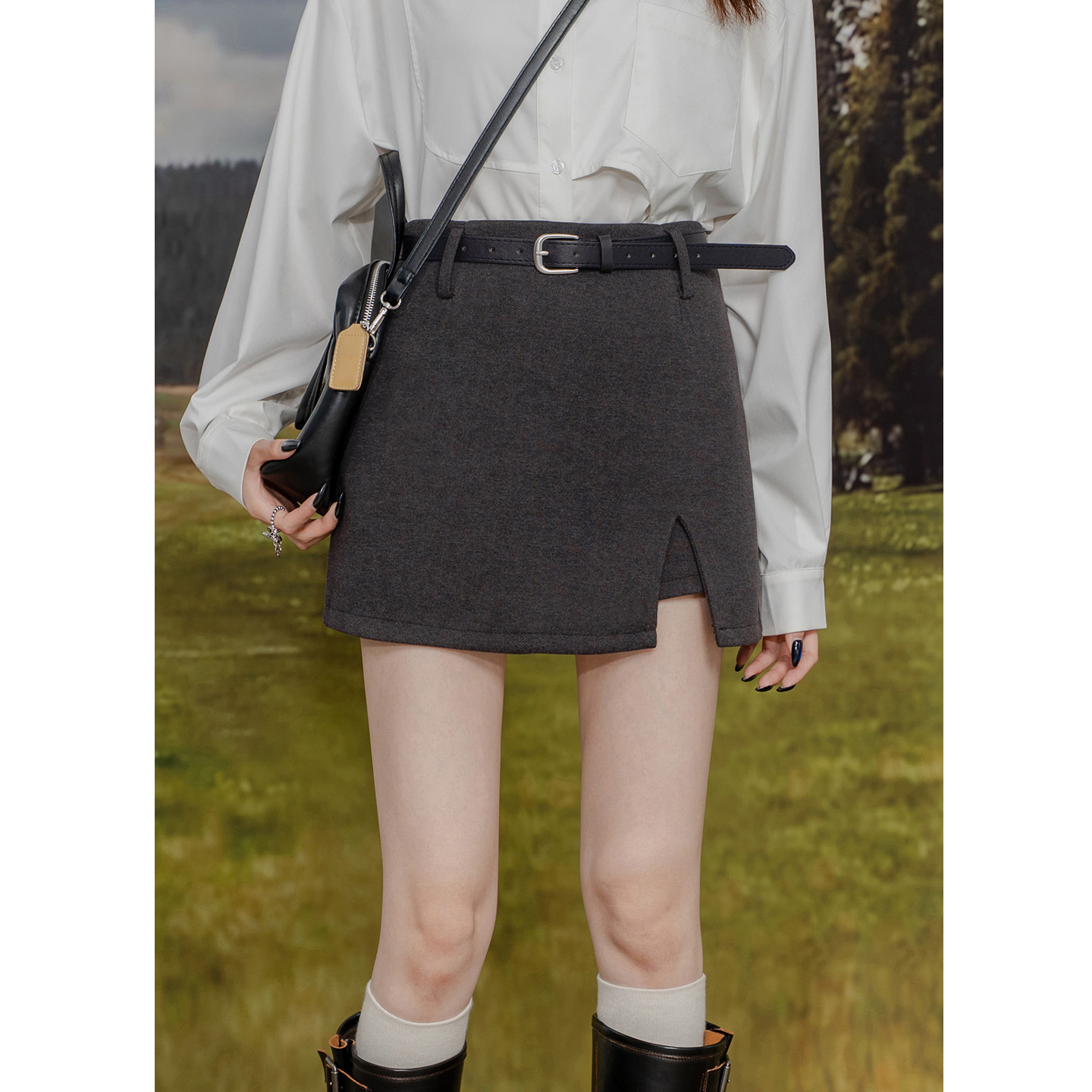 高腰毛呢短裙裤女黑色开衩显瘦百搭包臀A字短裙防走光呢子半身裙