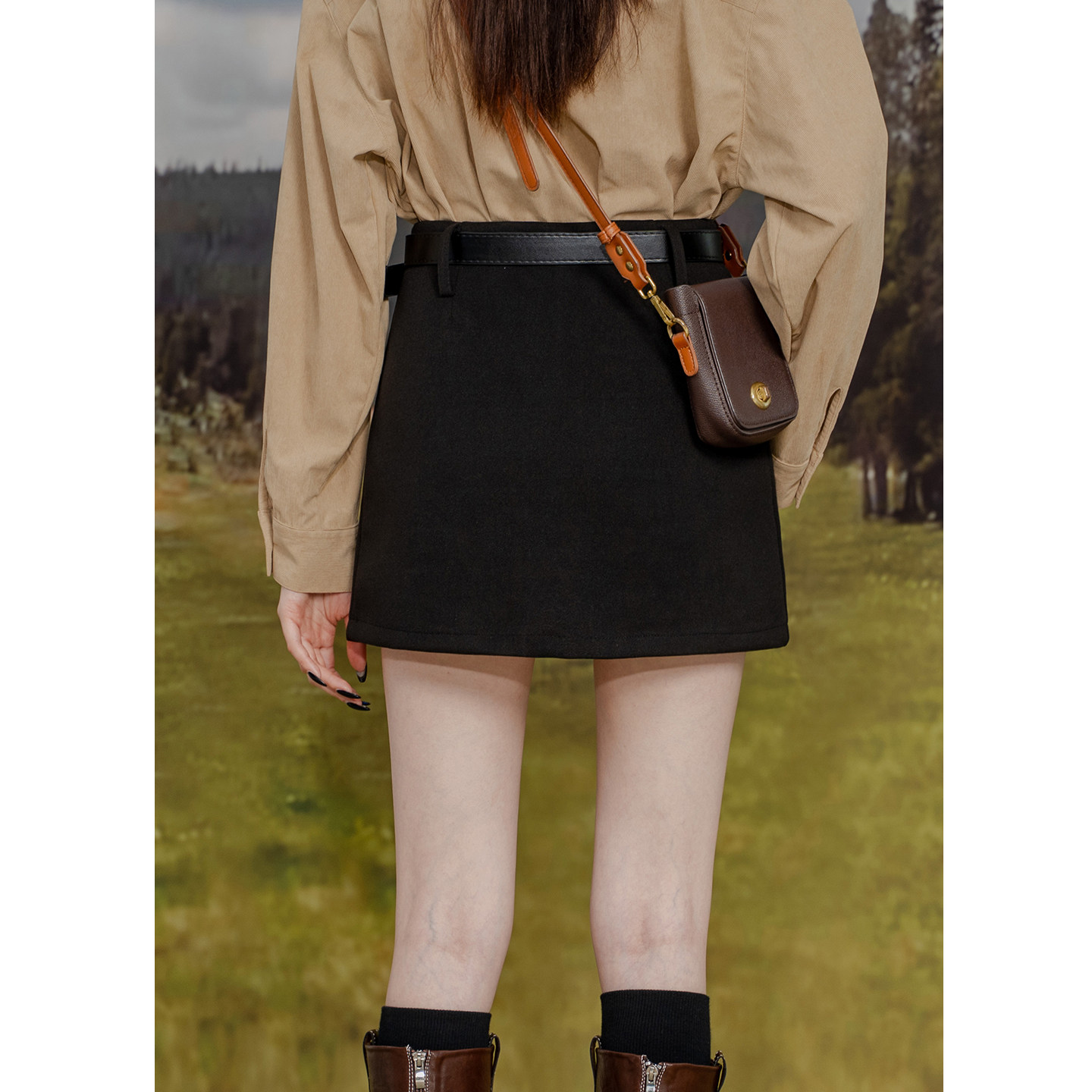 高腰毛呢显瘦百搭A字半身裙
