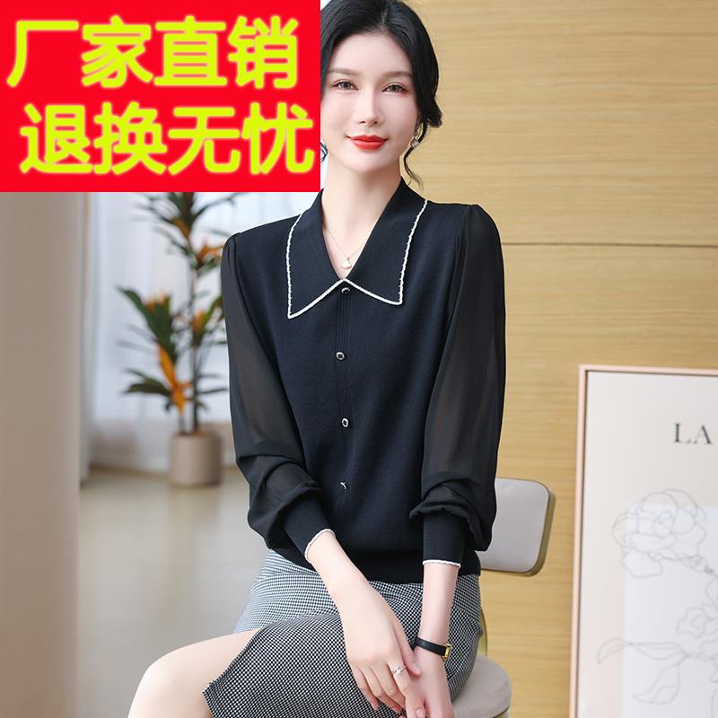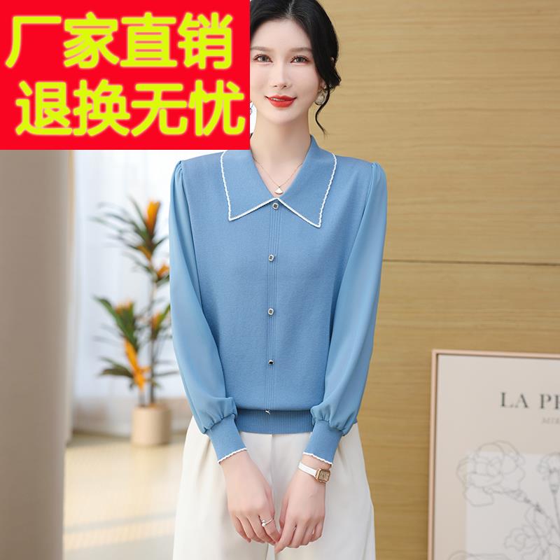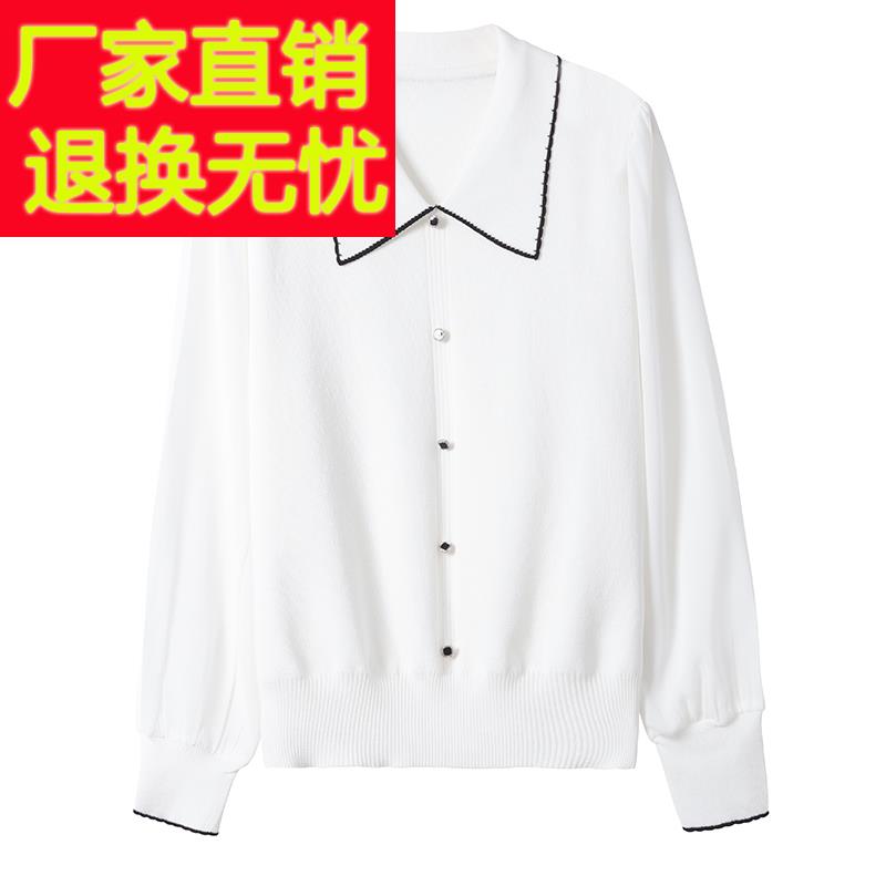 时尚娃娃领针织衫女春装新款打底衫显瘦冰丝小衫百搭上衣短款薄款