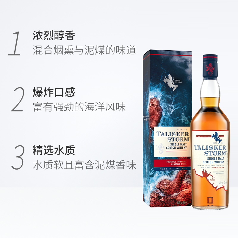 泰斯卡风暴700ml单支装苏格兰进口单一麦芽威士忌泥煤风味正品