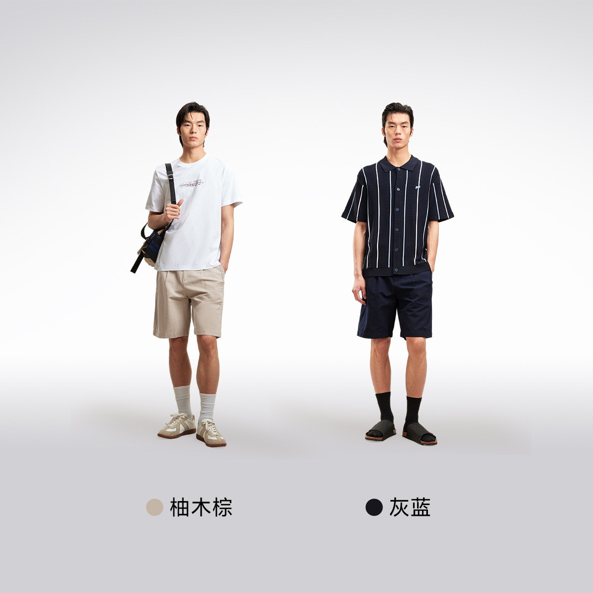 杰克琼斯夏季亚麻五分男士短裤男款纯色休闲裤子男裤子潮牌男装