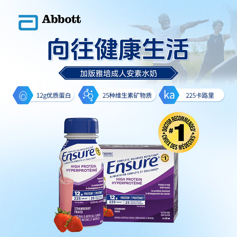 加版雅培成人安素水奶术后恢复液体奶草莓味12g装235ml*6瓶/组