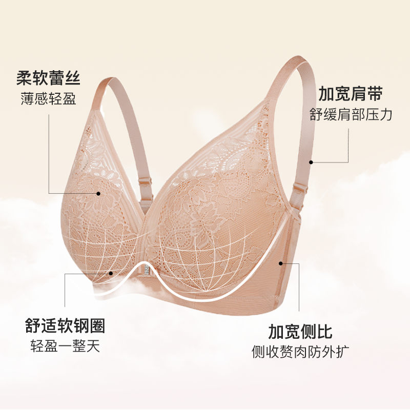 古今内衣女透气小胸聚拢网纱蕾丝文胸防下垂舒适透气