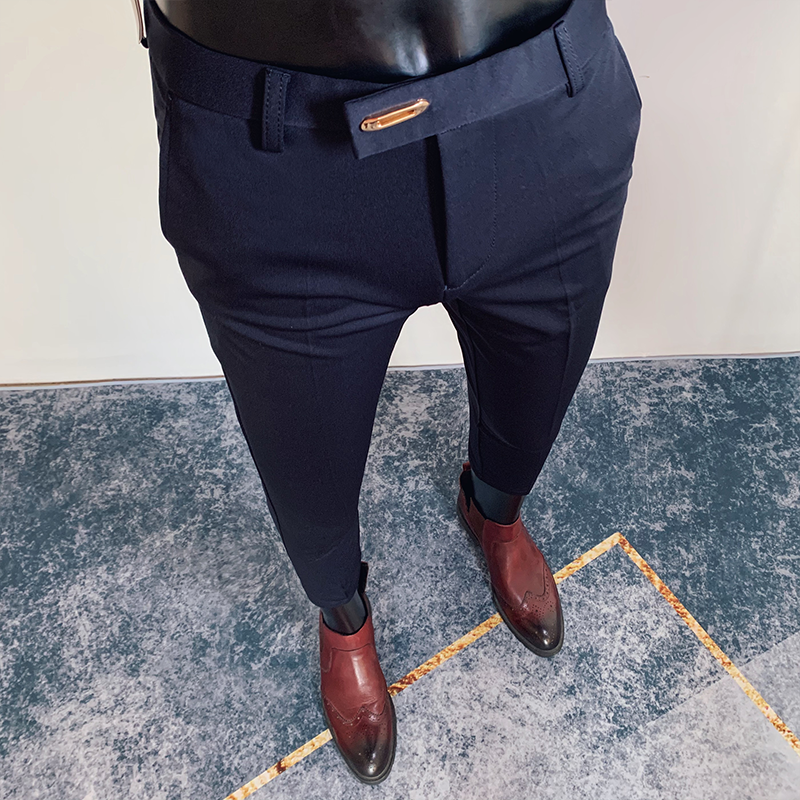 夏季薄款西裤高级感男士修身小脚九分发型师潮牌休闲弹力西装裤子