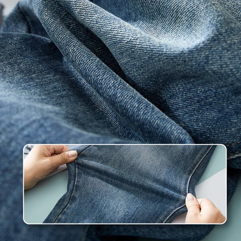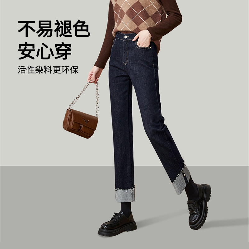 逸阳翻边复古直筒牛仔裤女2025年秋季新款遮肉显瘦小个子烟管裤子