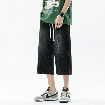 宽松直筒七分牛仔裤子男夏季薄款休闲中裤潮牌美式复古运动八分裤