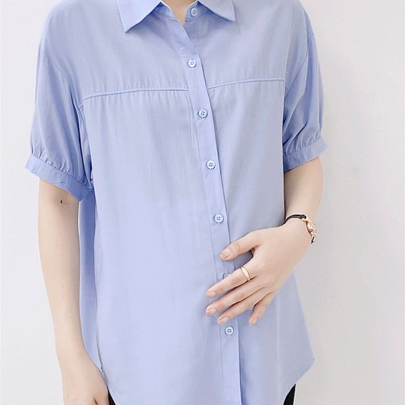 孕妇装春装蓝色长袖孕妇衬衫打底衬衣春秋季短袖职业孕妇雪纺上衣