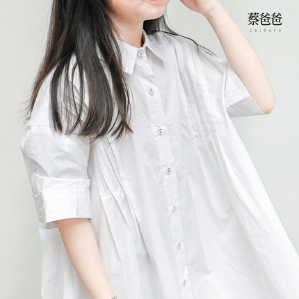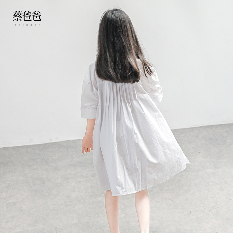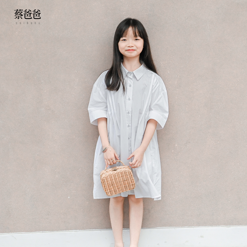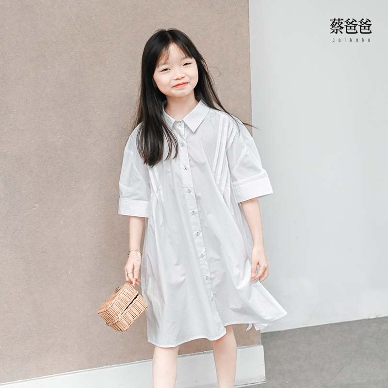 蔡爸爸童装新款夏季洋气连衣裙小清新女中童装白色翻领衬衫裙085