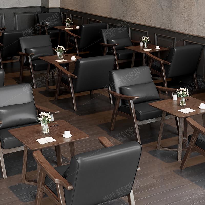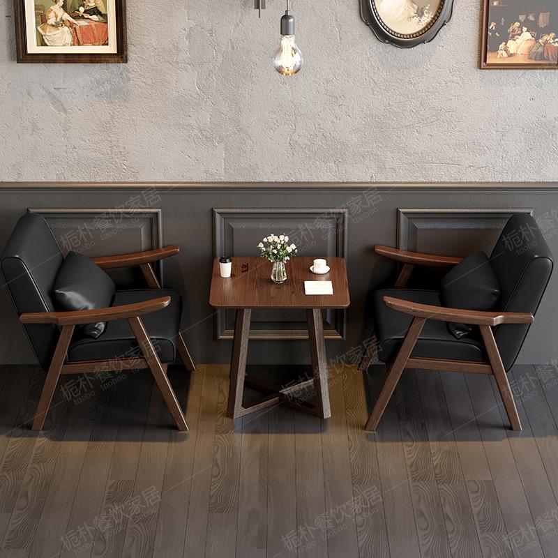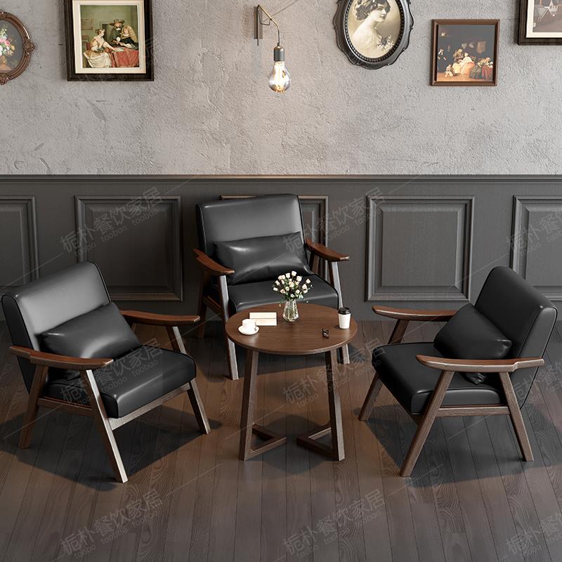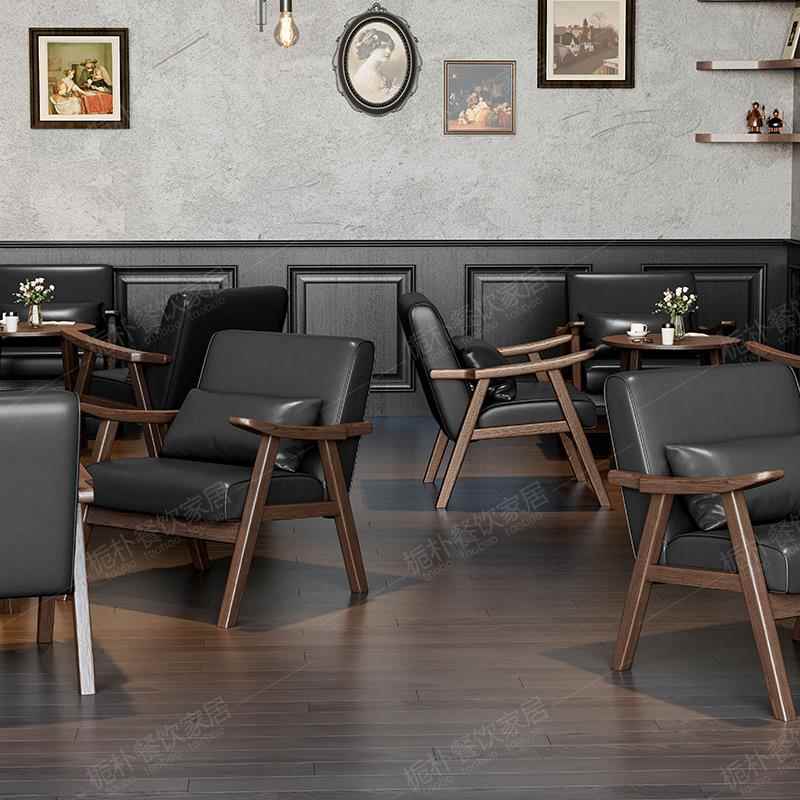 复古咖啡厅奶茶店桌椅组合黑色酒吧沙发卡座休闲中古实木接待洽谈