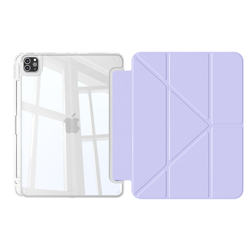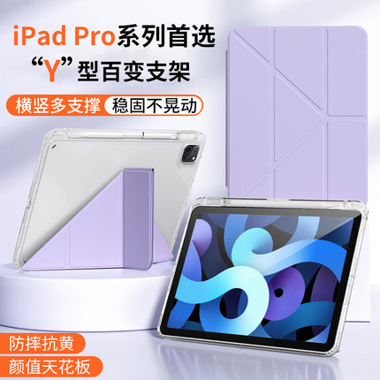 适用iPadpro保护套ipad9平板壳air5苹果11寸带笔槽10轻便mini6电脑2素皮电脑4第8包7亚克力Y型三折防弯13新款