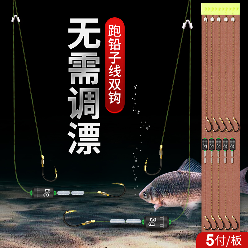新型免调漂跑铅子线双钩成品伊势尼金袖野钓鱼钩渔具套装自动找底
