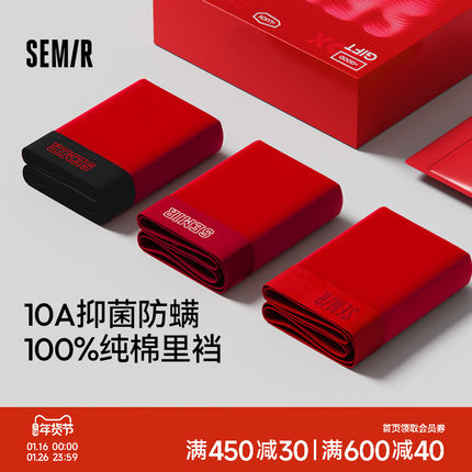 森马男士内裤纯棉全棉裆红色本命马年男生新年礼物2026款短裤礼盒