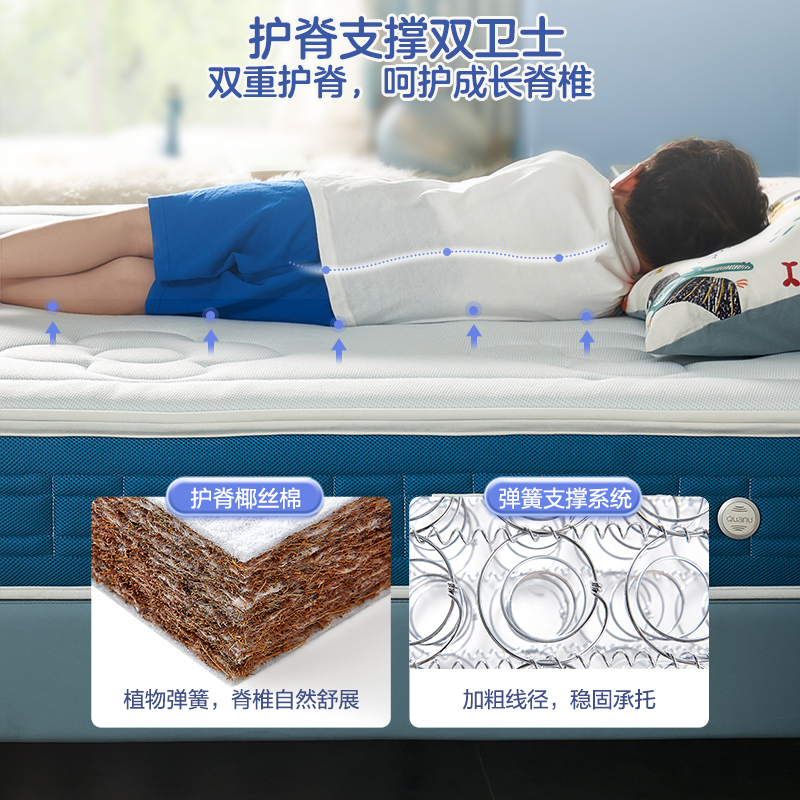 全友家居儿童专用单人护脊护腰椰棕床垫卧室家用学生乳胶弹簧床垫